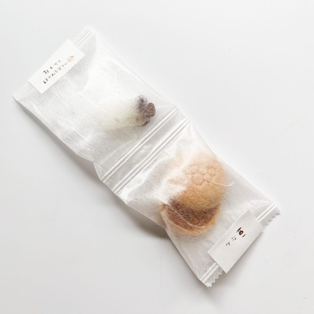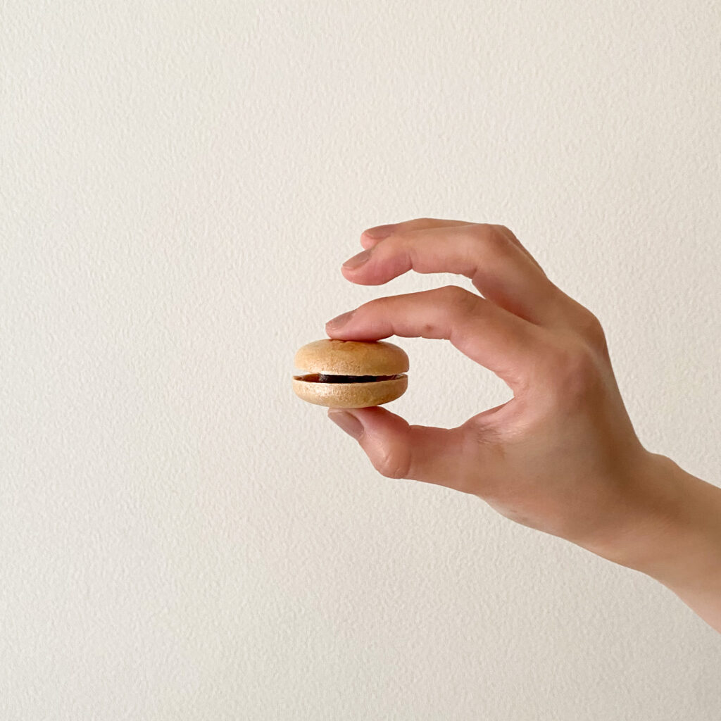 香ばしいアーモンドとキャラメルがたっぷりと詰まった、ひとくちサイズのフロランタンの種に小豆入りのお餅をはさみます。
