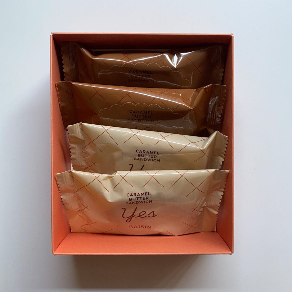 Yesには発酵バターのサブレに濃厚なバニラキャラメルと果実味溢れるレーズンを組み合わせた「レーズン キャラメルバターサンドイッチ」