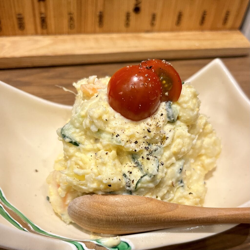 最初にポテトサラダと鶏皮ポン酢、そして鶏味噌ピーマンを注文。