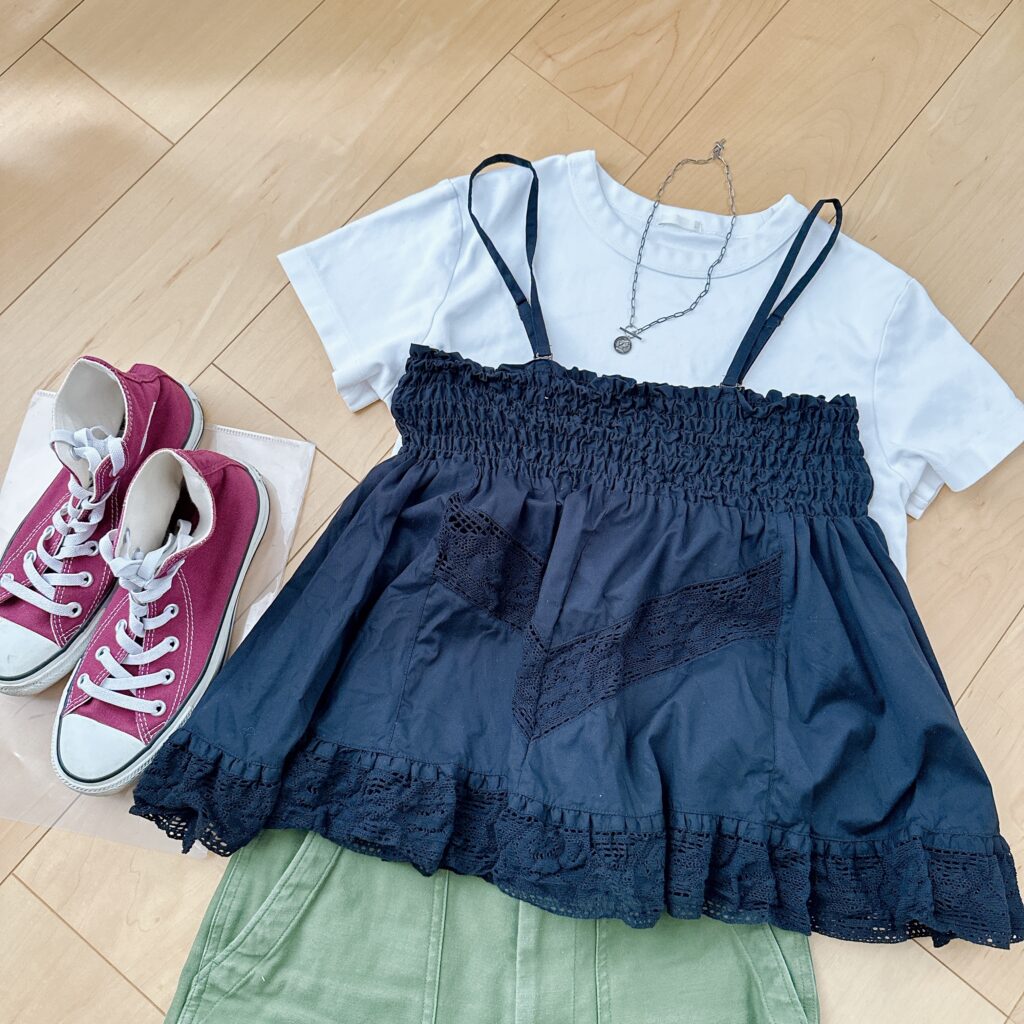 実際に甘めキャミソールを使ったコーデを考えてみて、思ったのは…
