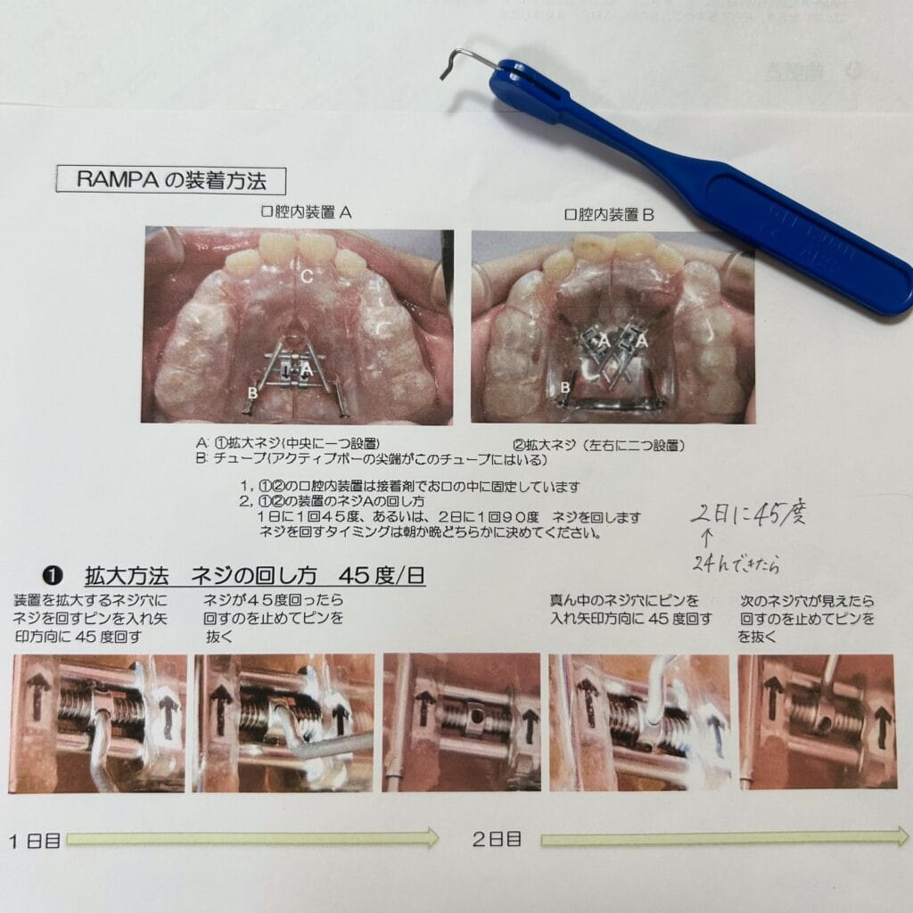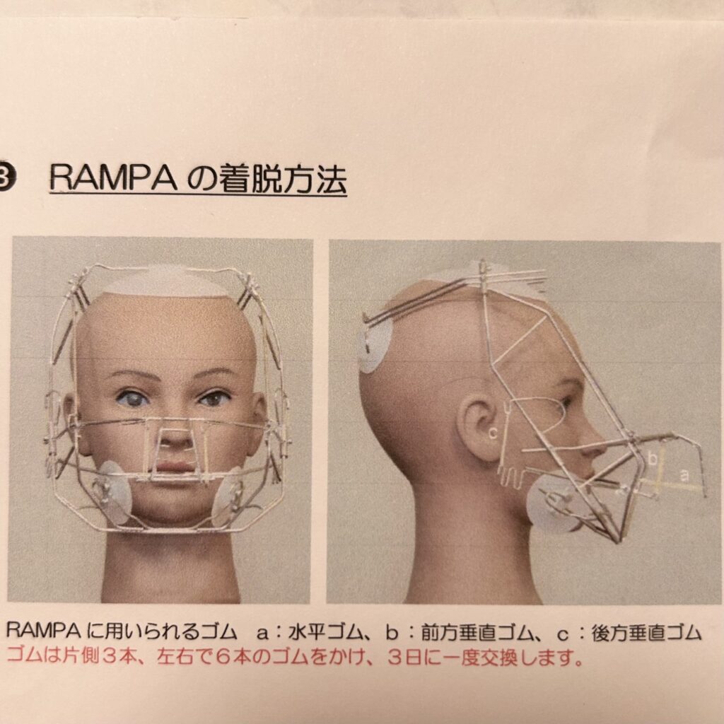 R A M P A は、 Right Angle Maxillary Protraction Appliance の略で、日本語では「上顎を正しい方向へ牽引する装置」を意味します。