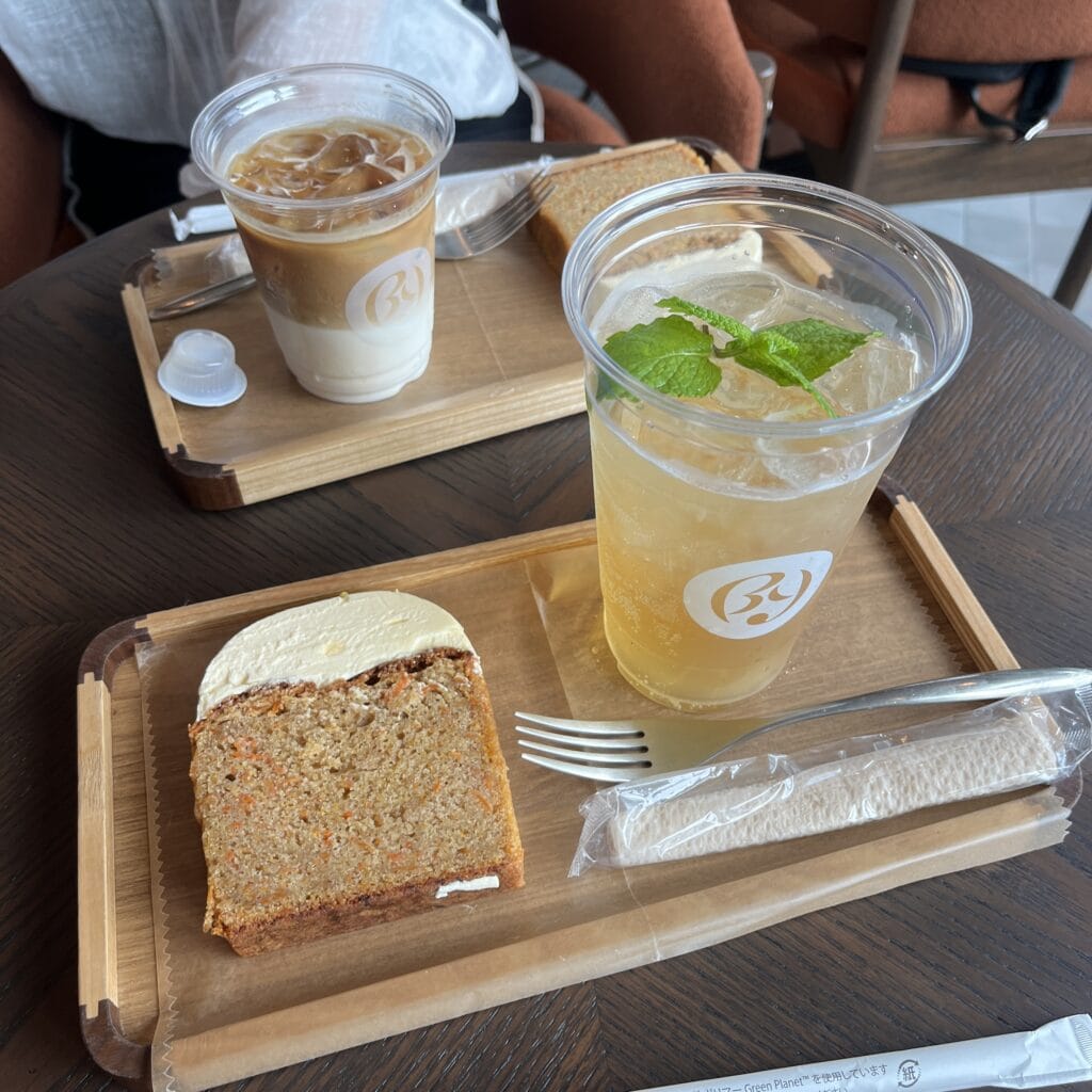 私はアイスグリーンティラッテと、もえちゃんおすすめのシュークリームを♡
