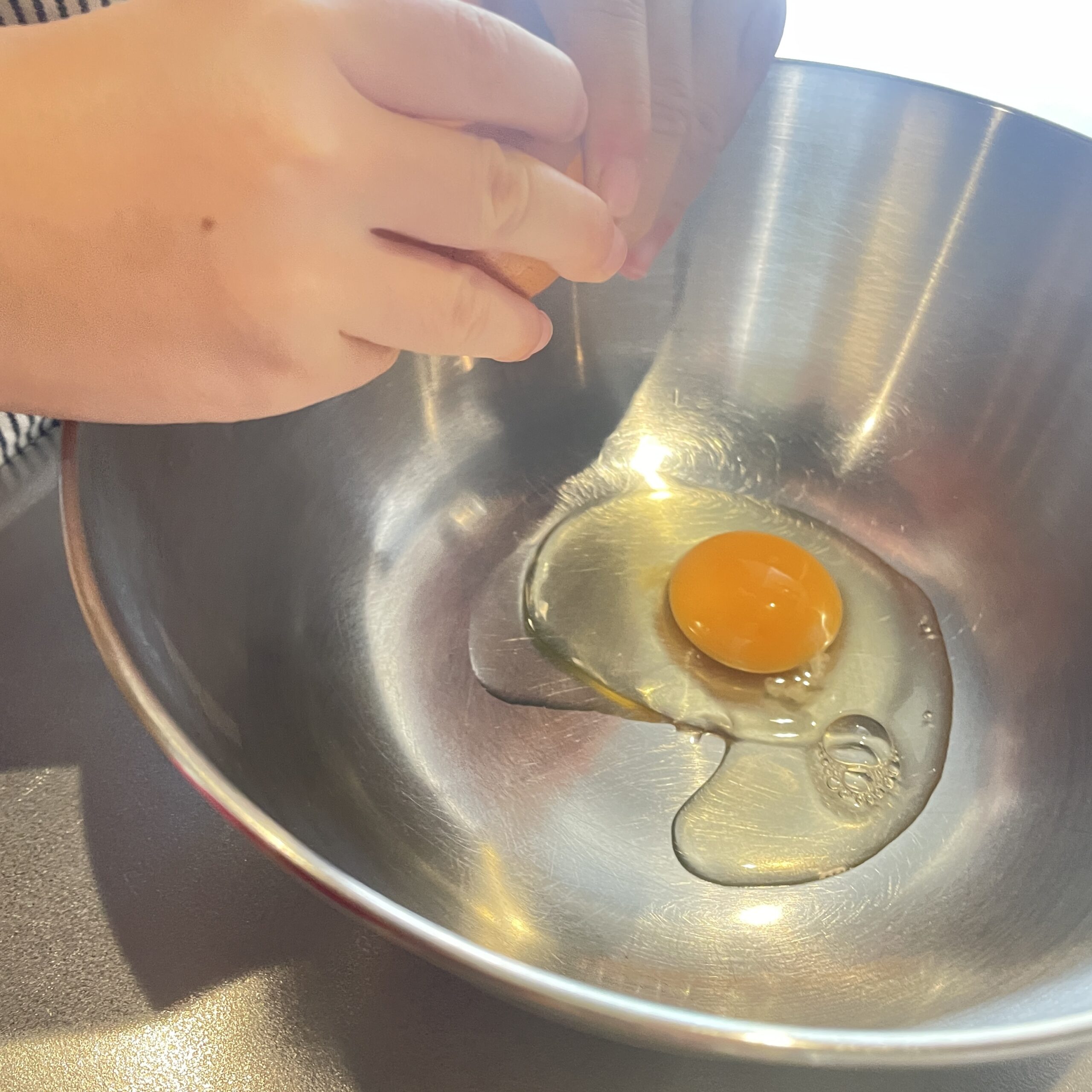 卵を上手に割れるようになってきた娘は、張り切って3つ割ってくれました。