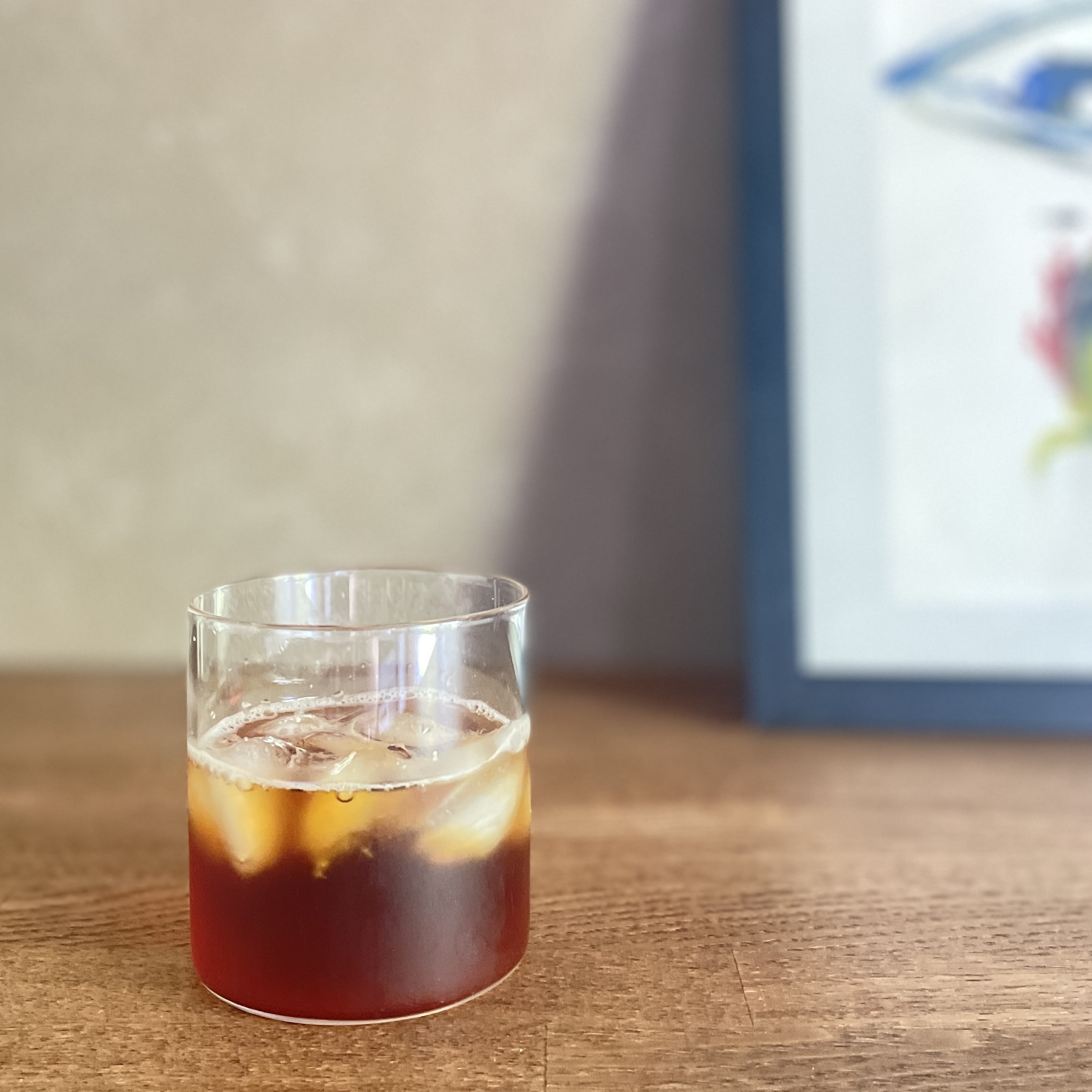 たまたま雑貨屋さんで見つけたこのグラスは、シンプルで飽きのこないデザインが大好きです。