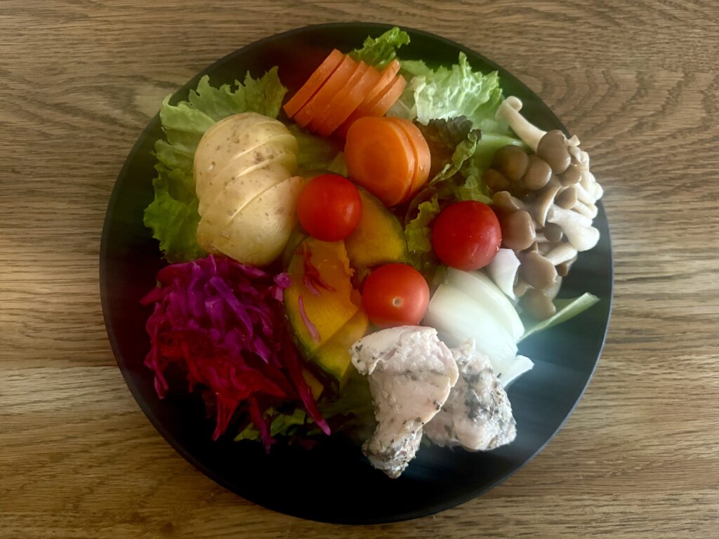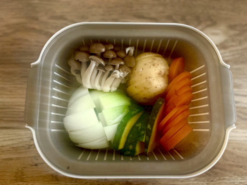 野菜の水分で蒸されて甘い温野菜のできあがり♪