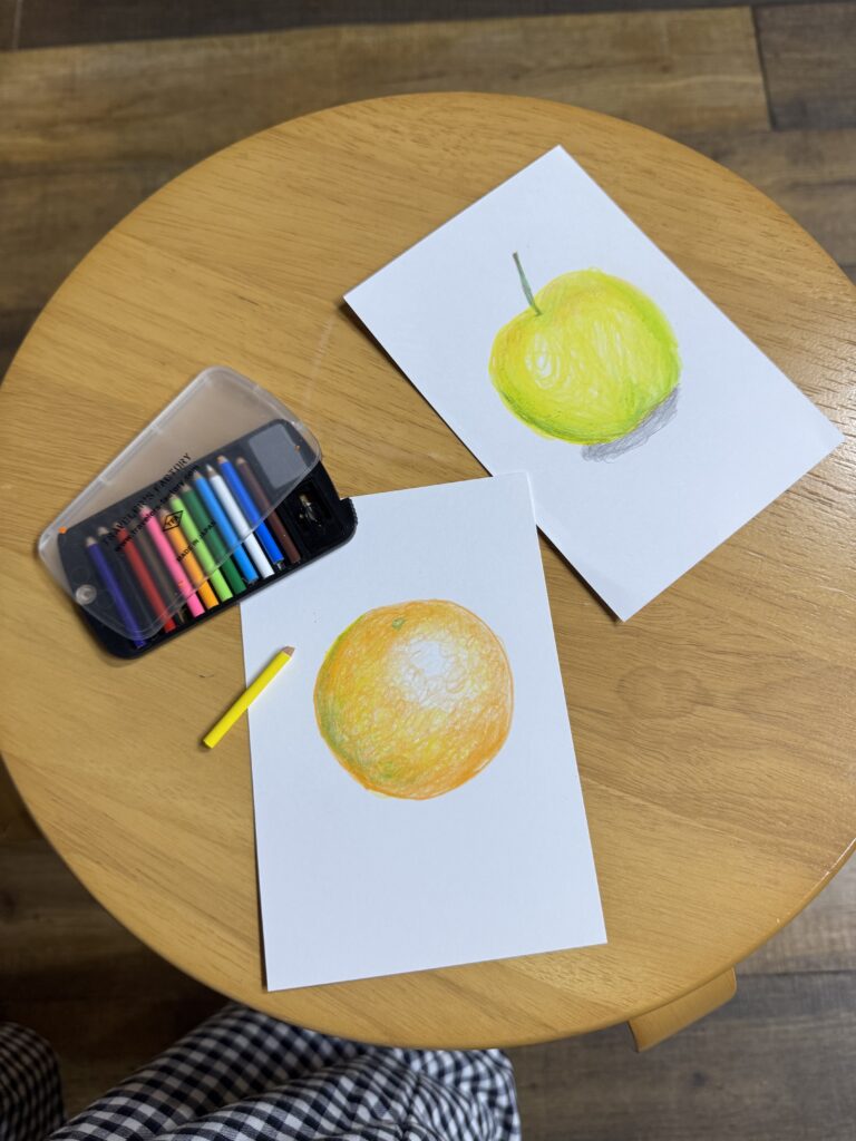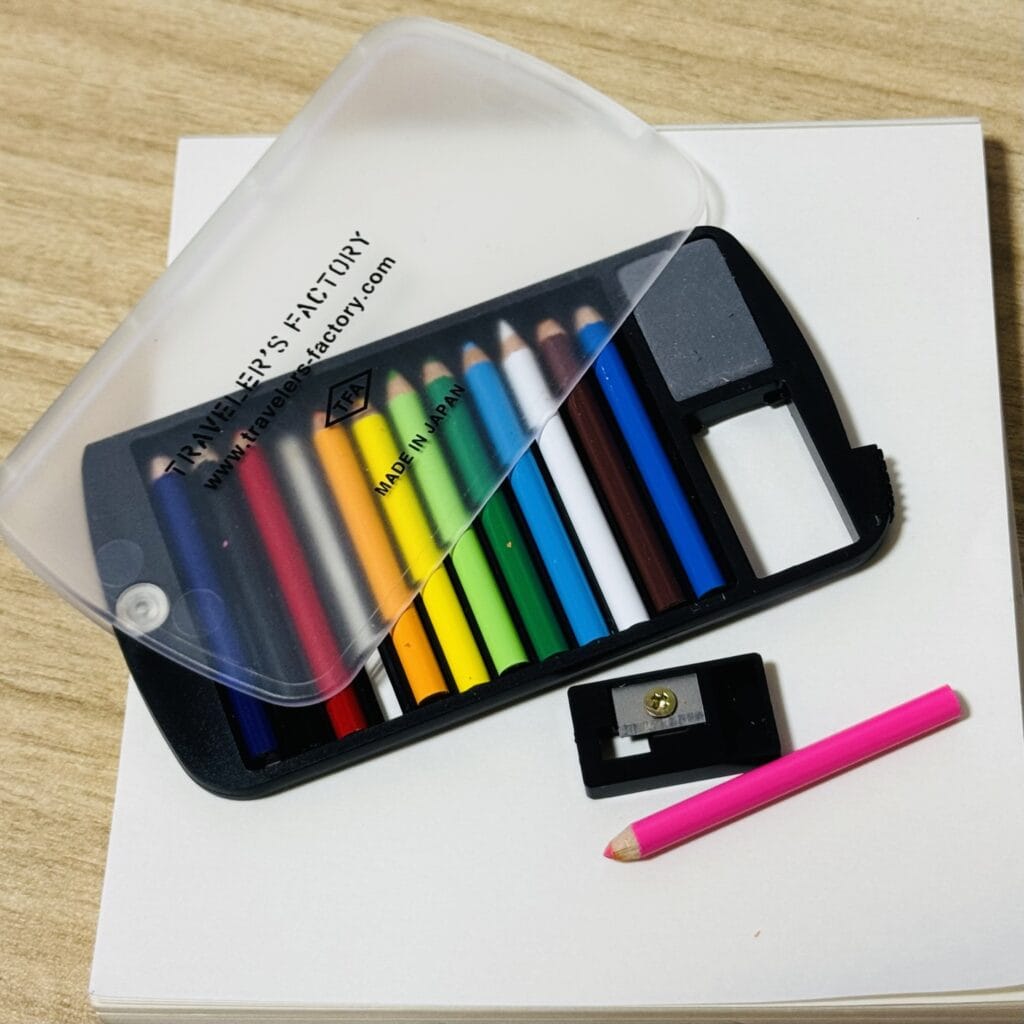 お出かけ先で、待ち時間の合間にミニ色鉛筆