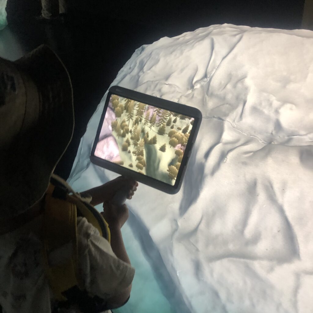 カナダ館では拡張現実の技術で、一見何もない氷山にカナダの雄大な自然や文明が登場します。