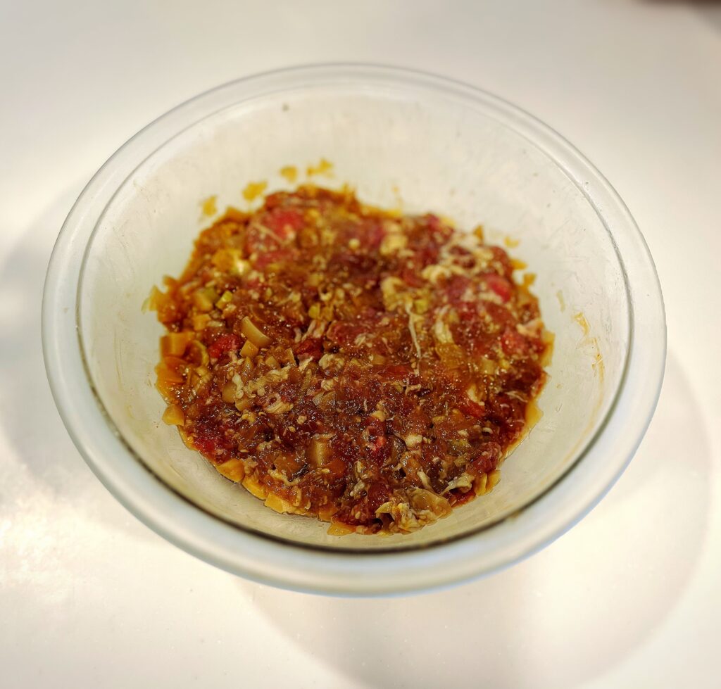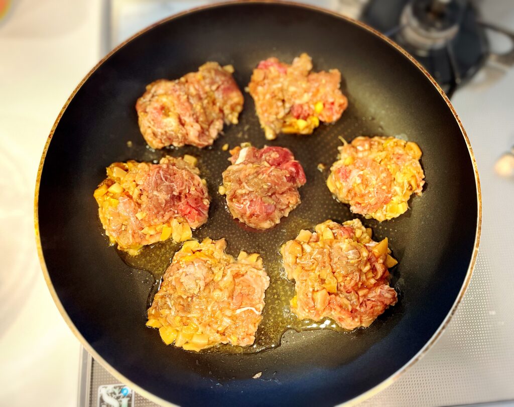 レシピでは椎茸を入れるようになっていたのですが、なくてエリンギをみじん切りにしました。