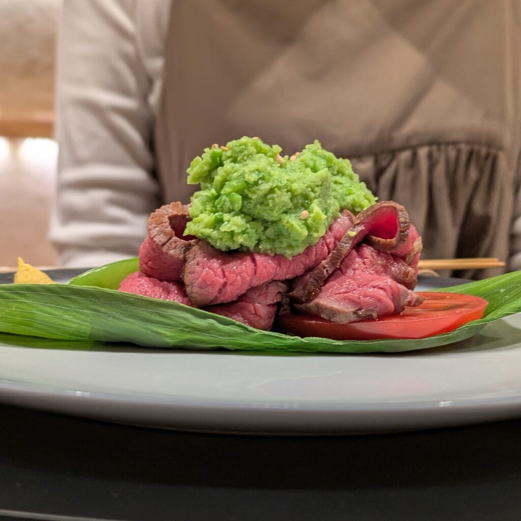 特に感動したのは、和牛ステーキのえんどう豆ソース。