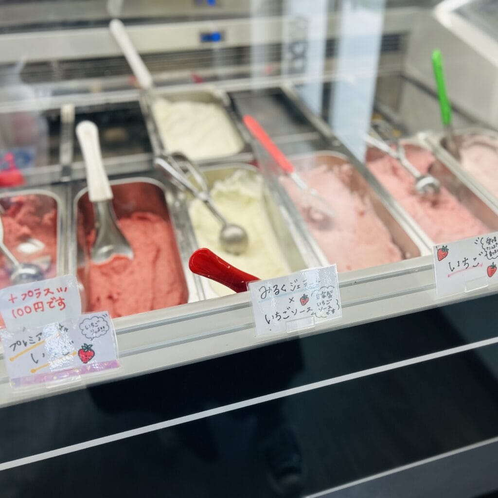 「いちごミルク」「いちごヨーグルト」「プレミアムいちご」など、色んないちご味のジェラートが並んでおり、いちご好きにはたまりません♡