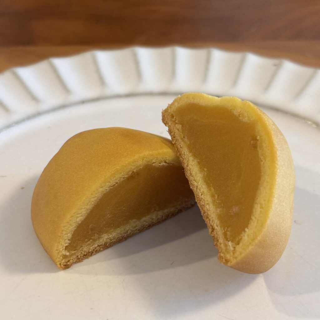 薄めの皮の中にはレモンあんがぎっしり。あんの中にはレモンピールが入っています。このレモンピールが甘酸っぱくていいアクセントになっています。見た目よりずっと、レモン感を感じられるおまんじゅうでした。