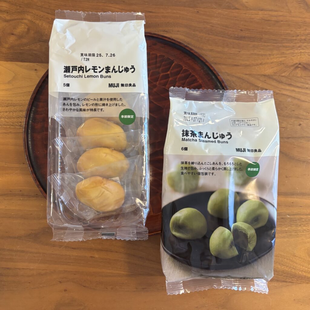 先日、無印良品に日焼け止めを買いに行きました。無事に日焼け止めを見つけた後、ふらっとお菓子のコーナーを見ていたら、おまんじゅうが2種類も売っていました。おまんじゅうはどれも季節限定商品なので2種類同時に売っているのは珍しいんです。もちろん2つとも買ってきましたよ!