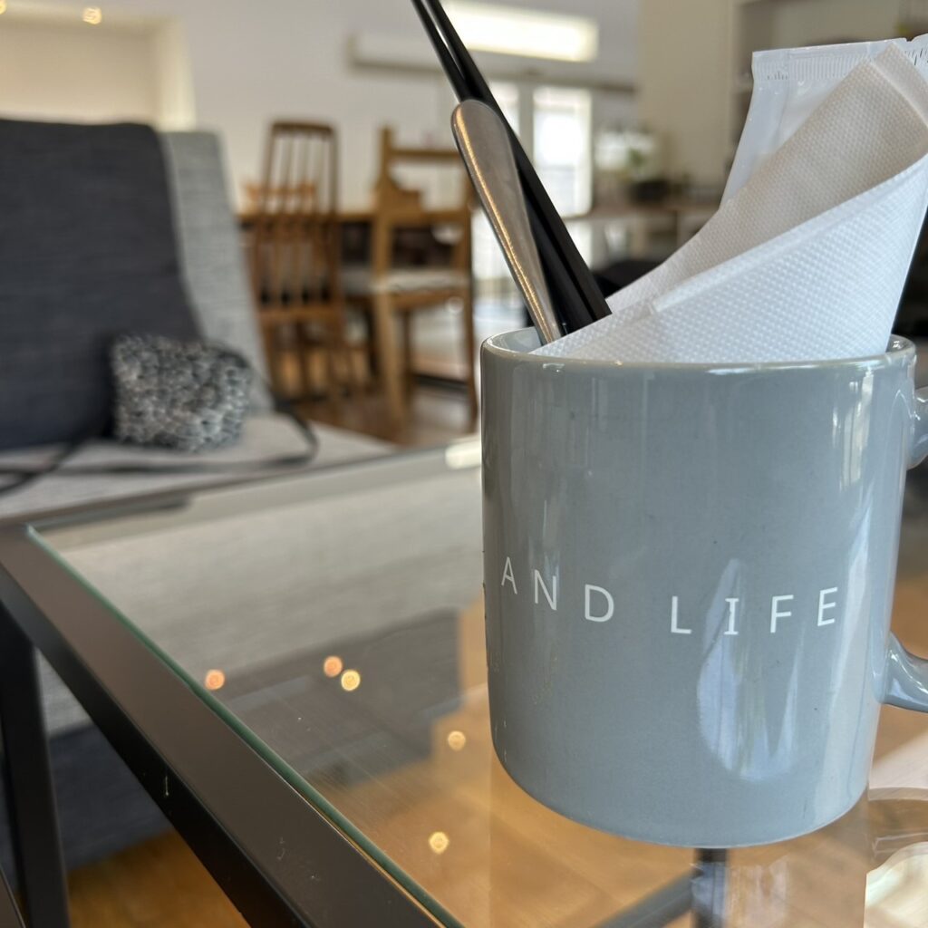 のずちゃんが食べるパフェの写真を撮ろうと持っていたところを撮られていました〜。