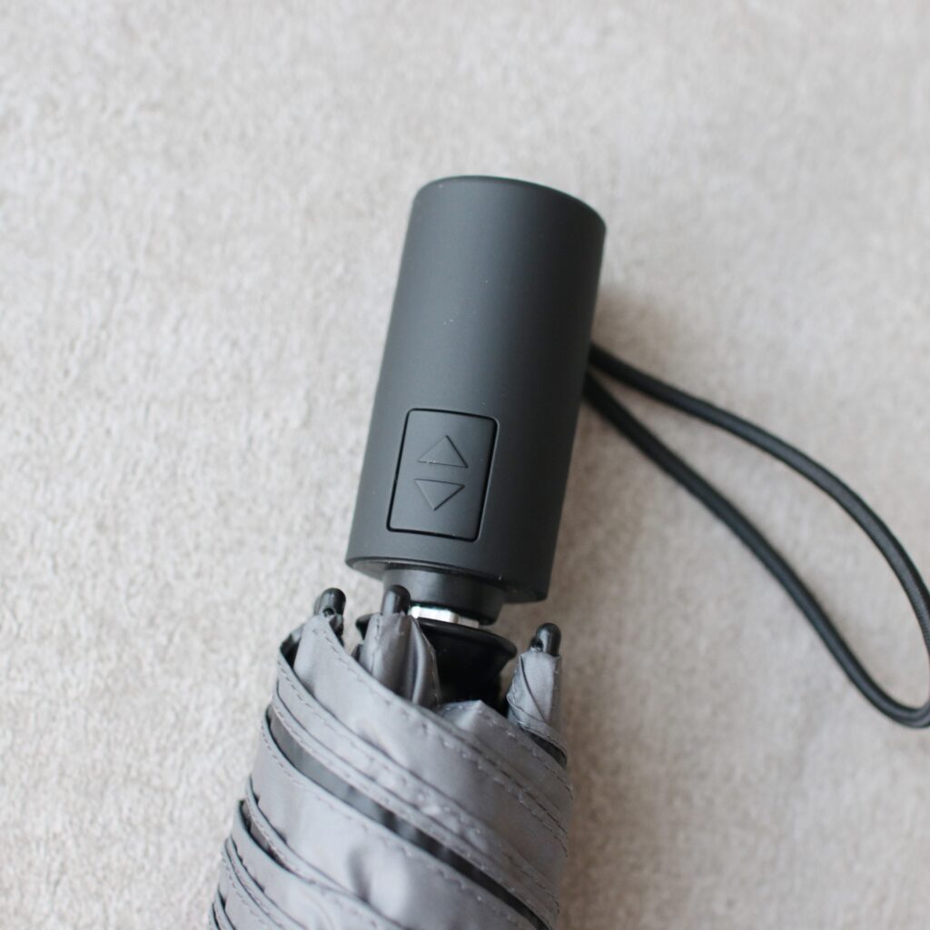 閉じた状態で手元のボタンを1回押すと自動で開き、傘が開いた状態でボタンを押せば自動で閉じます。