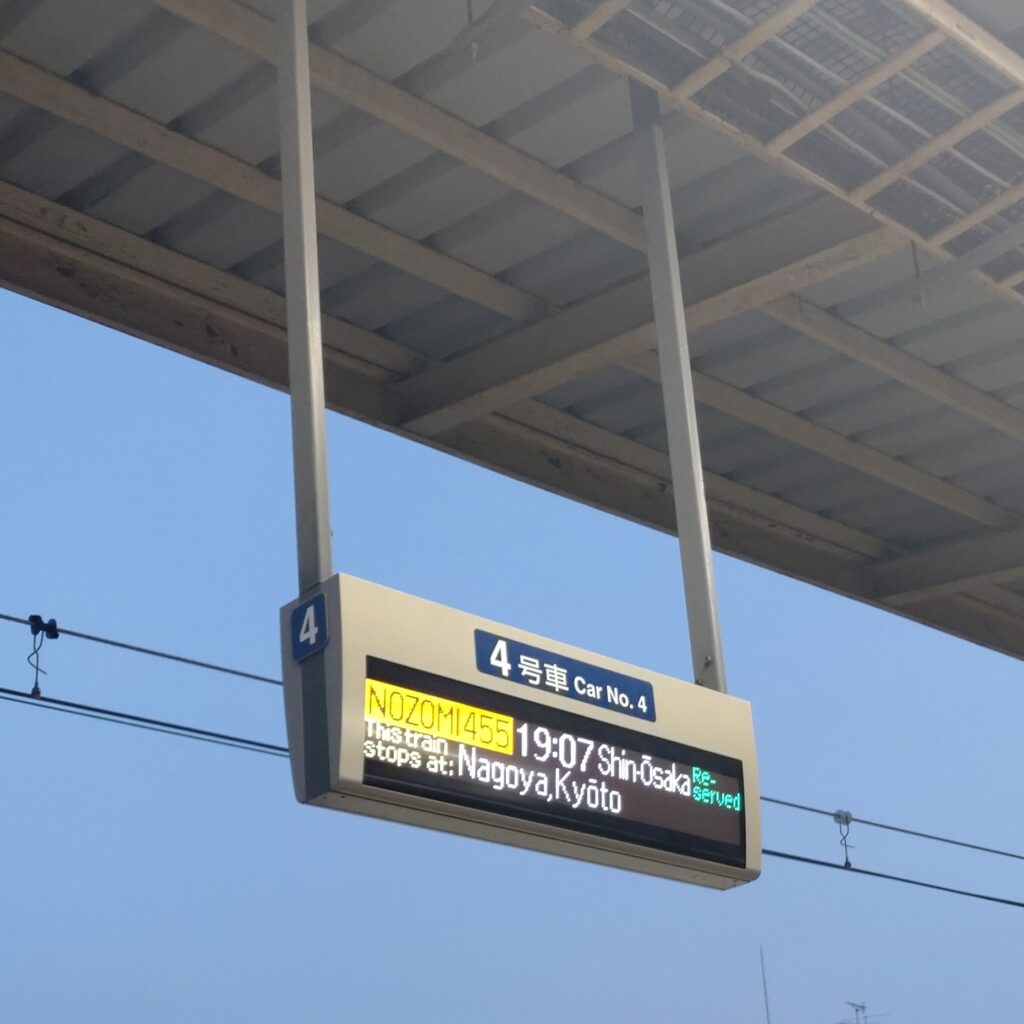 鎌倉から新横浜までは1時間弱かかるので、ここで神奈川の幼なじみと別れて18:00前に鎌倉を出発。途中トラブルでダイヤが乱れていましたが、無事に19:07分の新大阪行に乗り込みました。