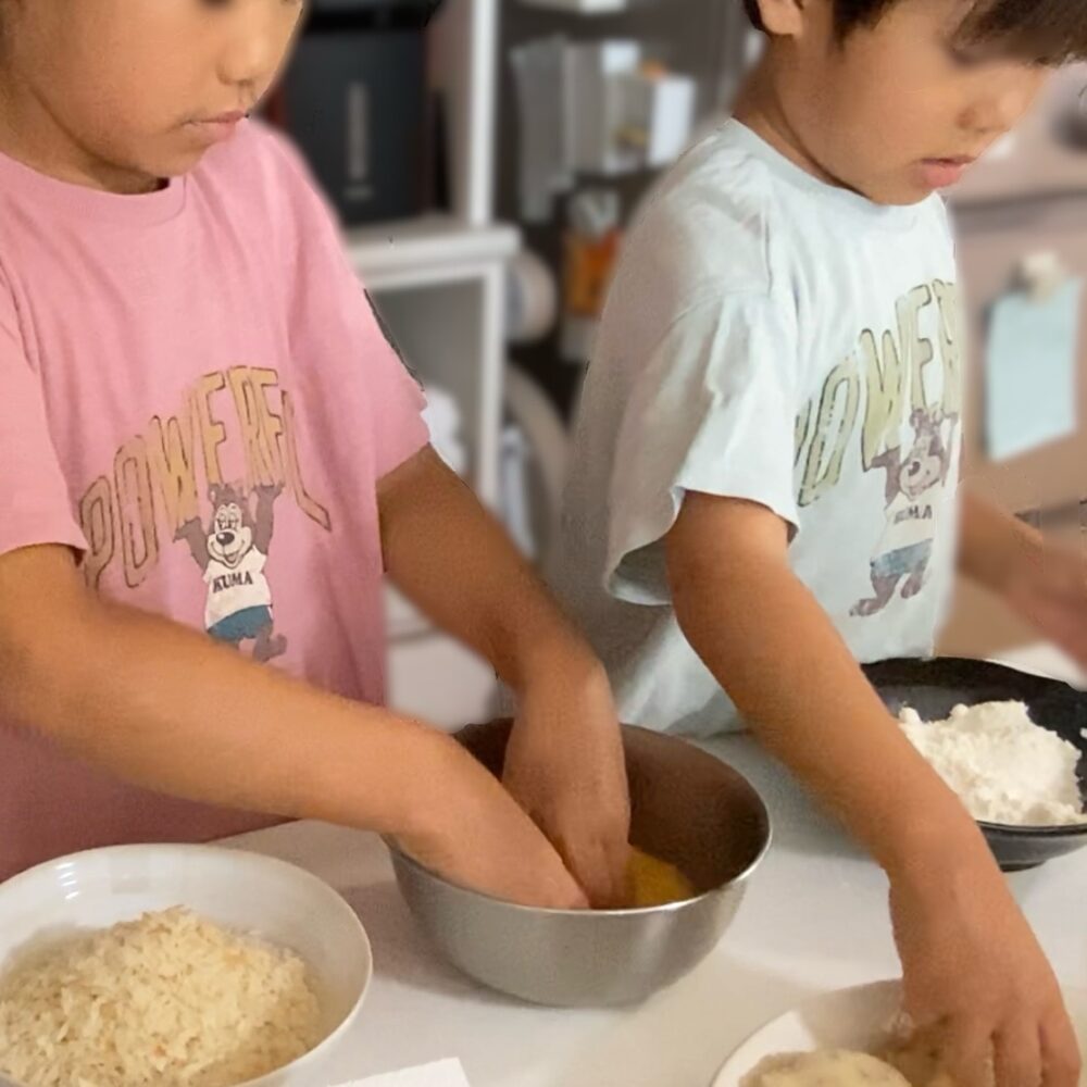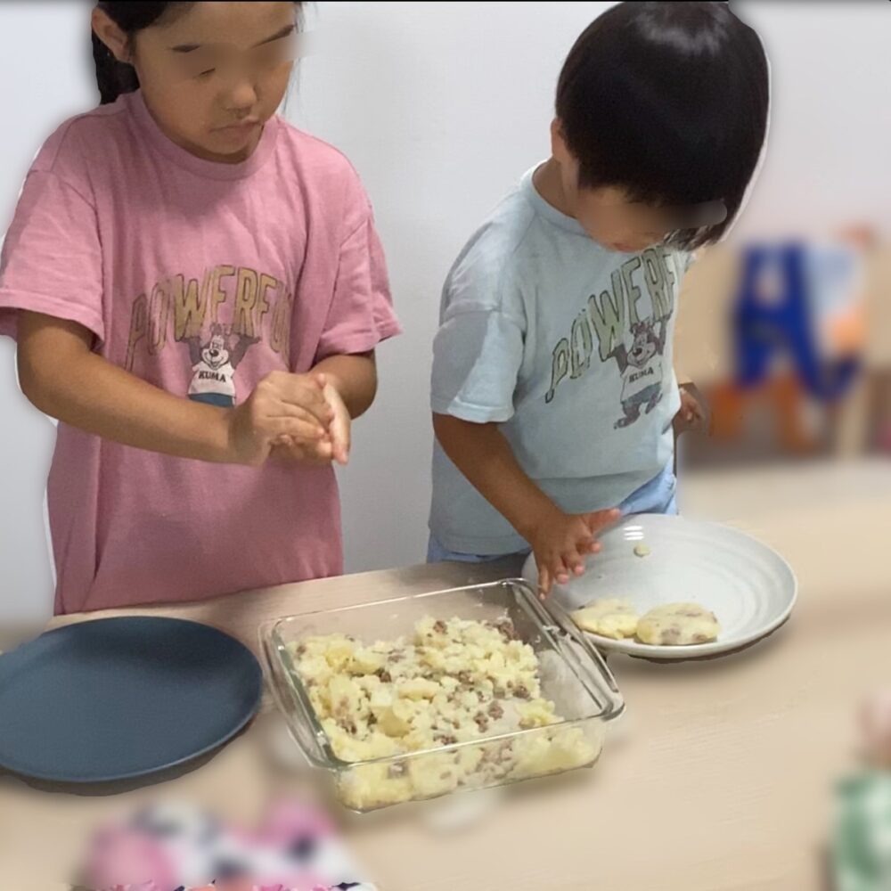 その日のうちに「せっかくだから一緒に作ろう!」と子どもたちとコロッケづくりに挑戦。