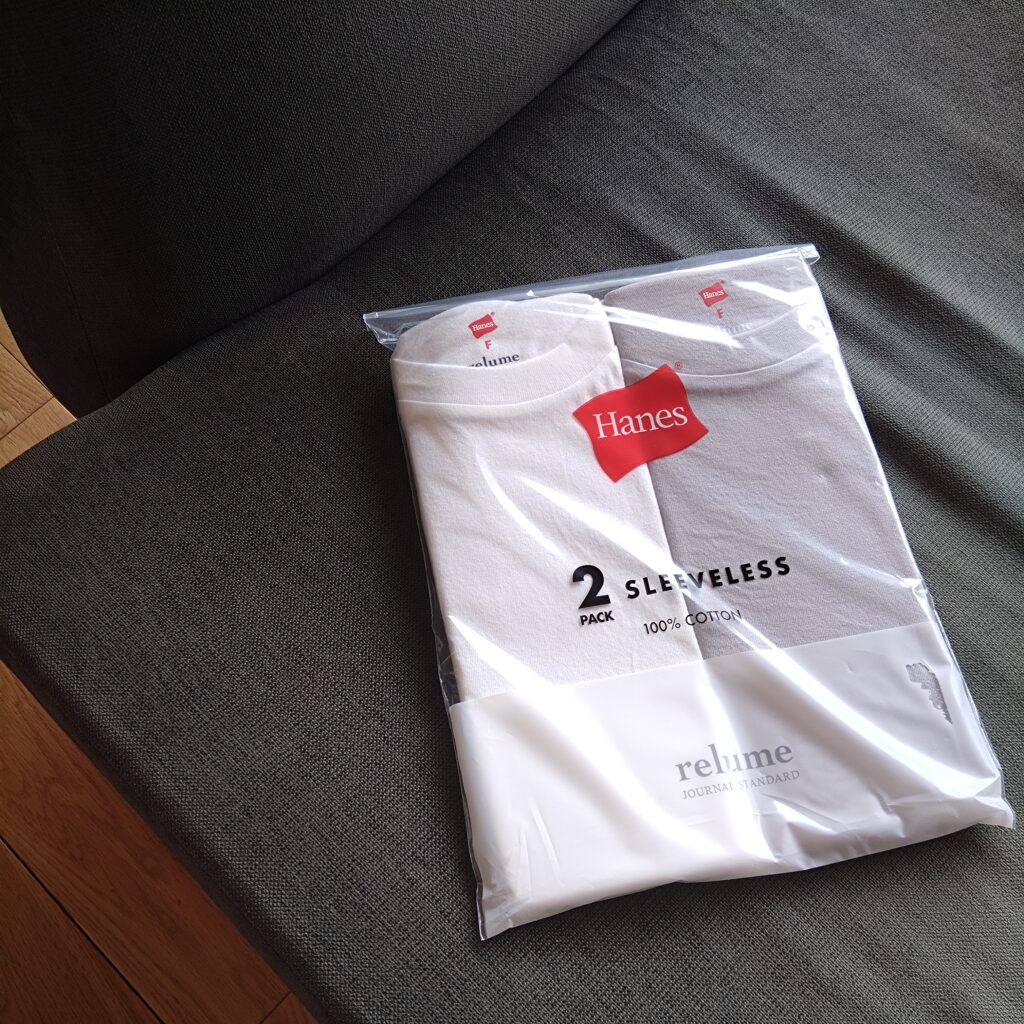 そのくたびれたヘインズと同型のものがどうも生産終了なのか見つけられず、サイズを比較し、あまり相違ないところで選んだのが、JOURNAL STANDARD relumeのスリーブレスプルオーバーです。