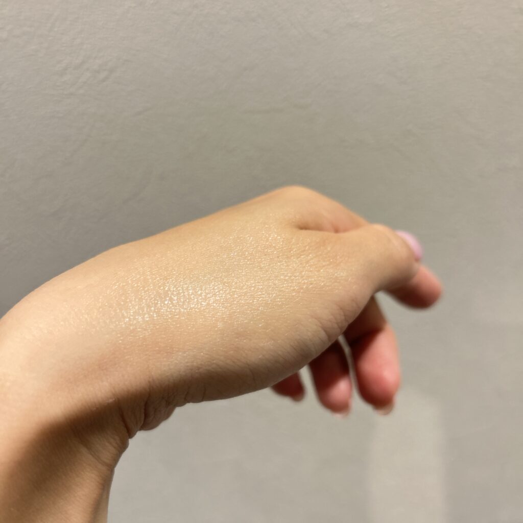 写真わかりにくくてすみません…塗った瞬間は少しオイリーな感じもしましたが、時間が経っても(しかも最近のこの暑さでも)ヨレを感じることはなかったです。むしろしっとりして、モチッとした肌感を演出してくれる気がする。