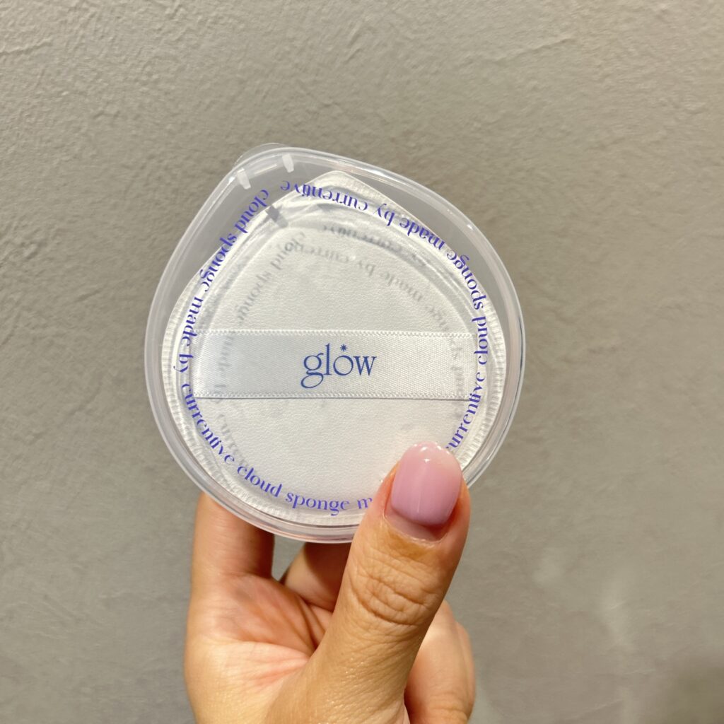 うまく使えるかなと早速使ってみたところ、これがめちゃくちゃ良い!!!!面が大きいので必然的に肌に当たる部分も広く、ファンデ叩き込み派の私にはぴったり。しかも厚さがあるので肌にポンポンしていて気持ちいい。雫型になっているので、先を使えば鼻横などの細かな部分にもきちんと入り込んでくれます。glowについてきたパフですが、私はBBクリームは指先で塗って、こちらのパフはファンデーション用に使っています。ケース入りなところも衛生的にいい♪