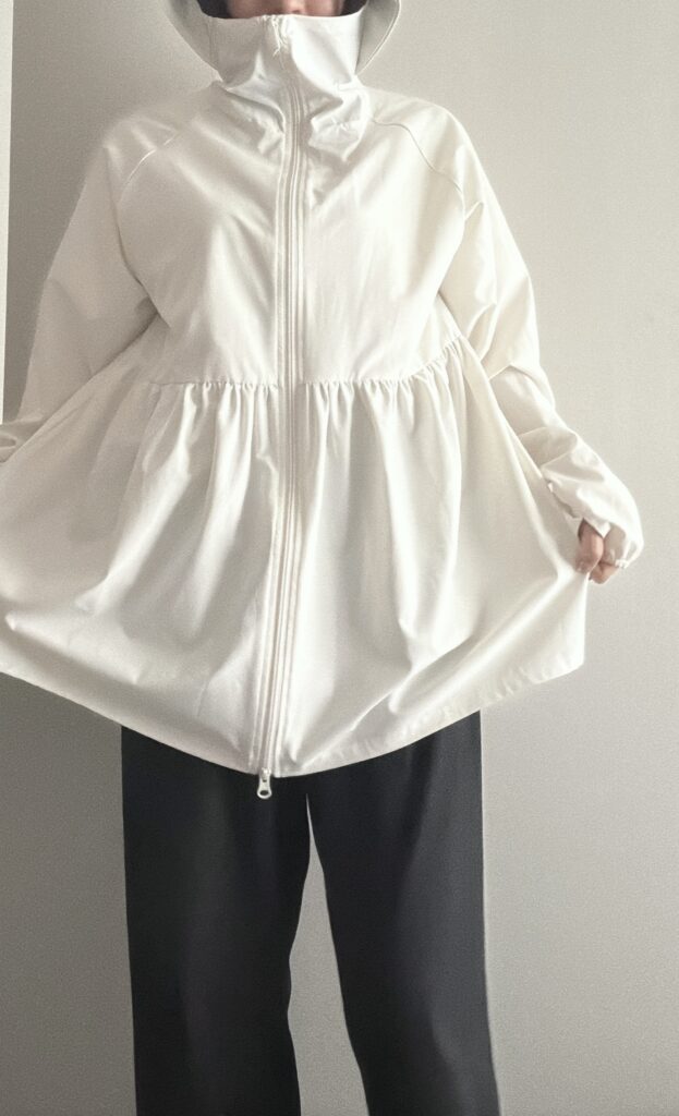 可愛いUVパーカーを見つけました♪ペプラムシルエットで、いかにもUVパーカー感があまりないです。