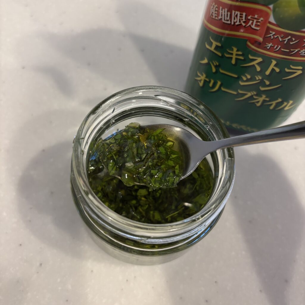 バジルが消費できず、刻んでオイル漬けにしてみました。