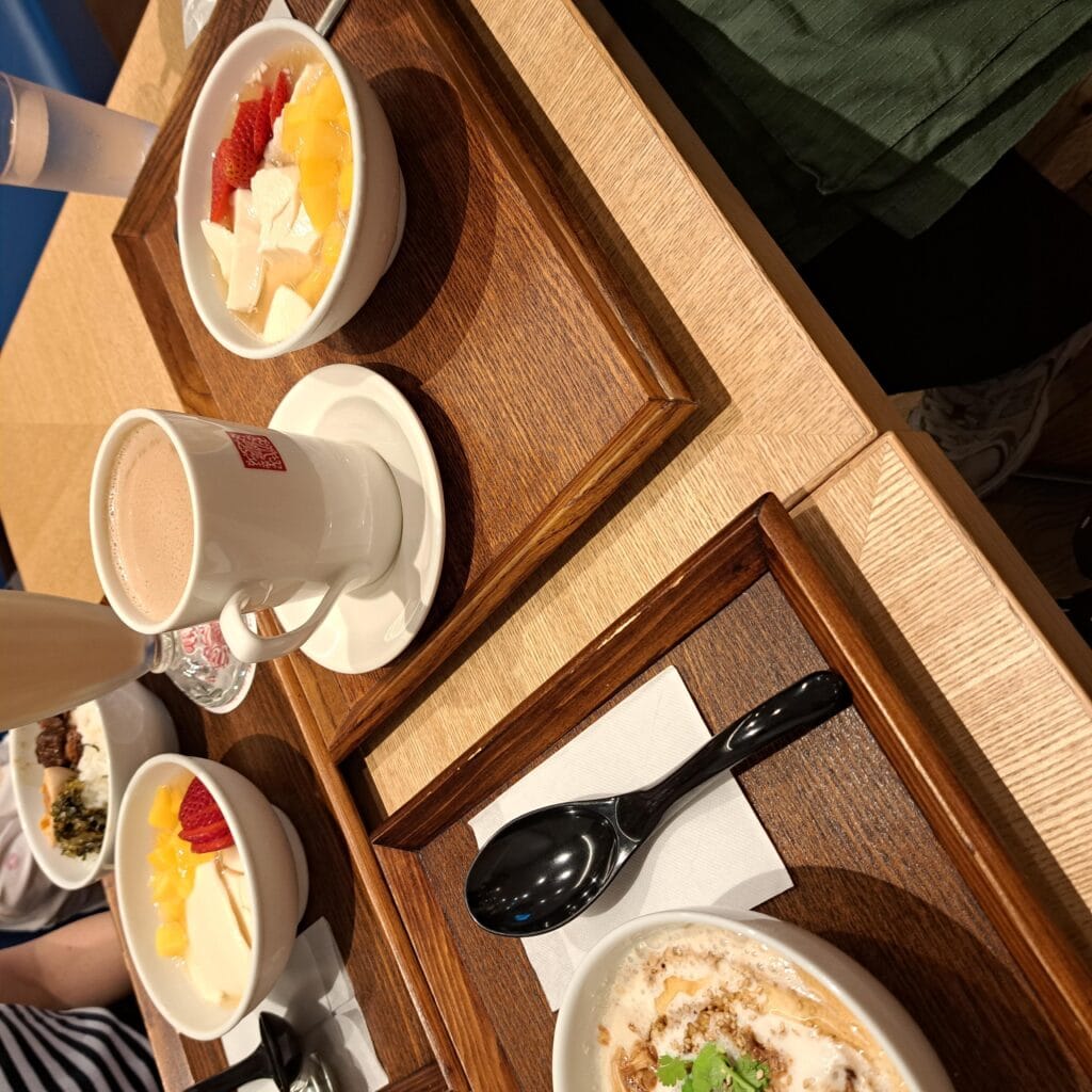 シェントウジャン(鹹豆漿) と、ドリンクは香醇チャイ。