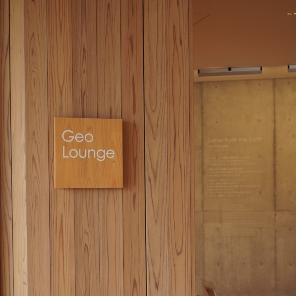 窓一面に広がる風景にゆったりとくつろげるソファーやテーブル、恐竜などの化石が展示されたジオスペース。