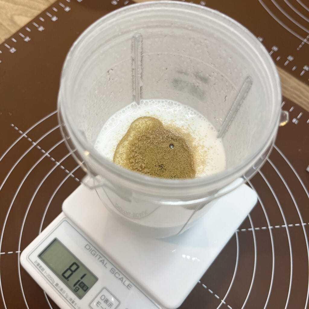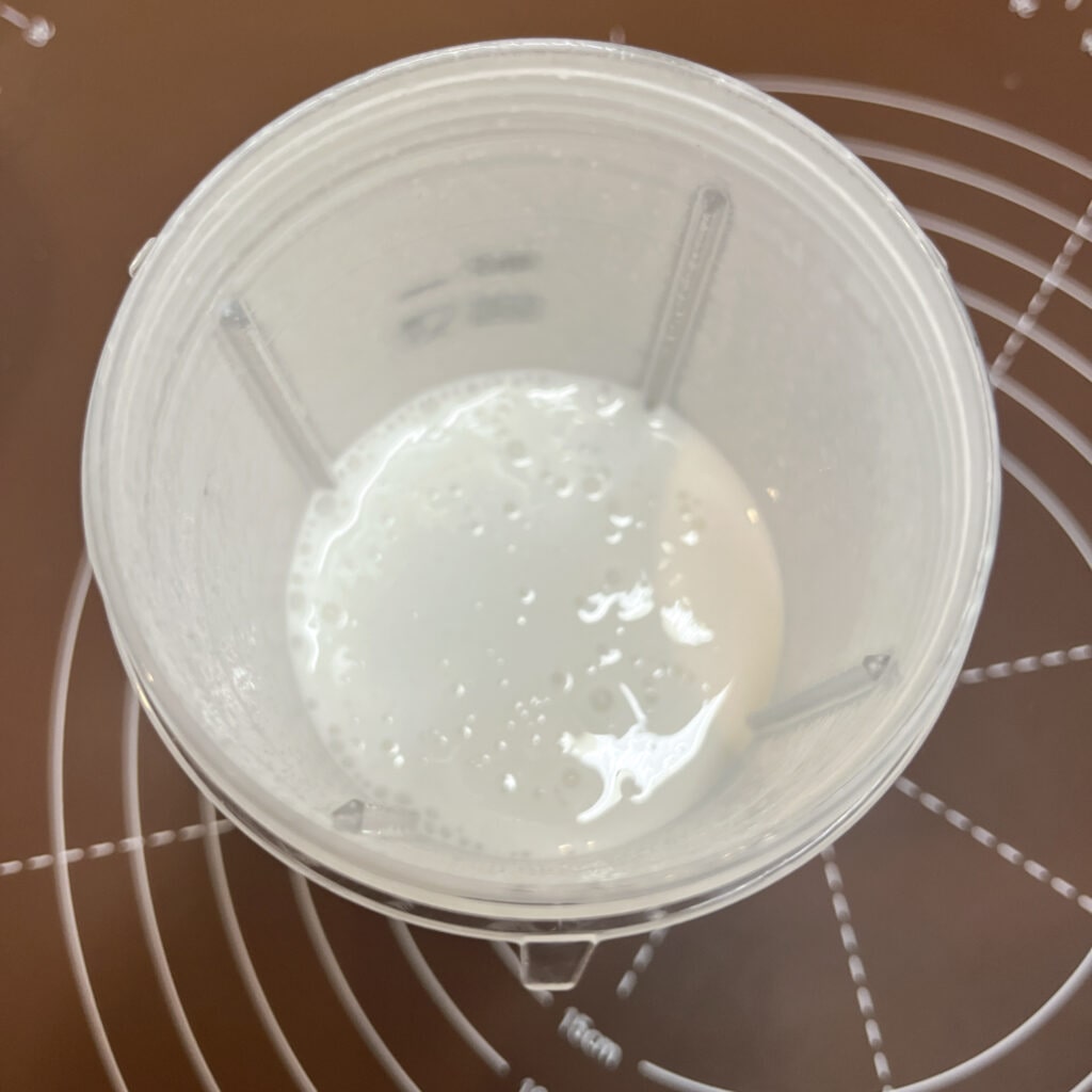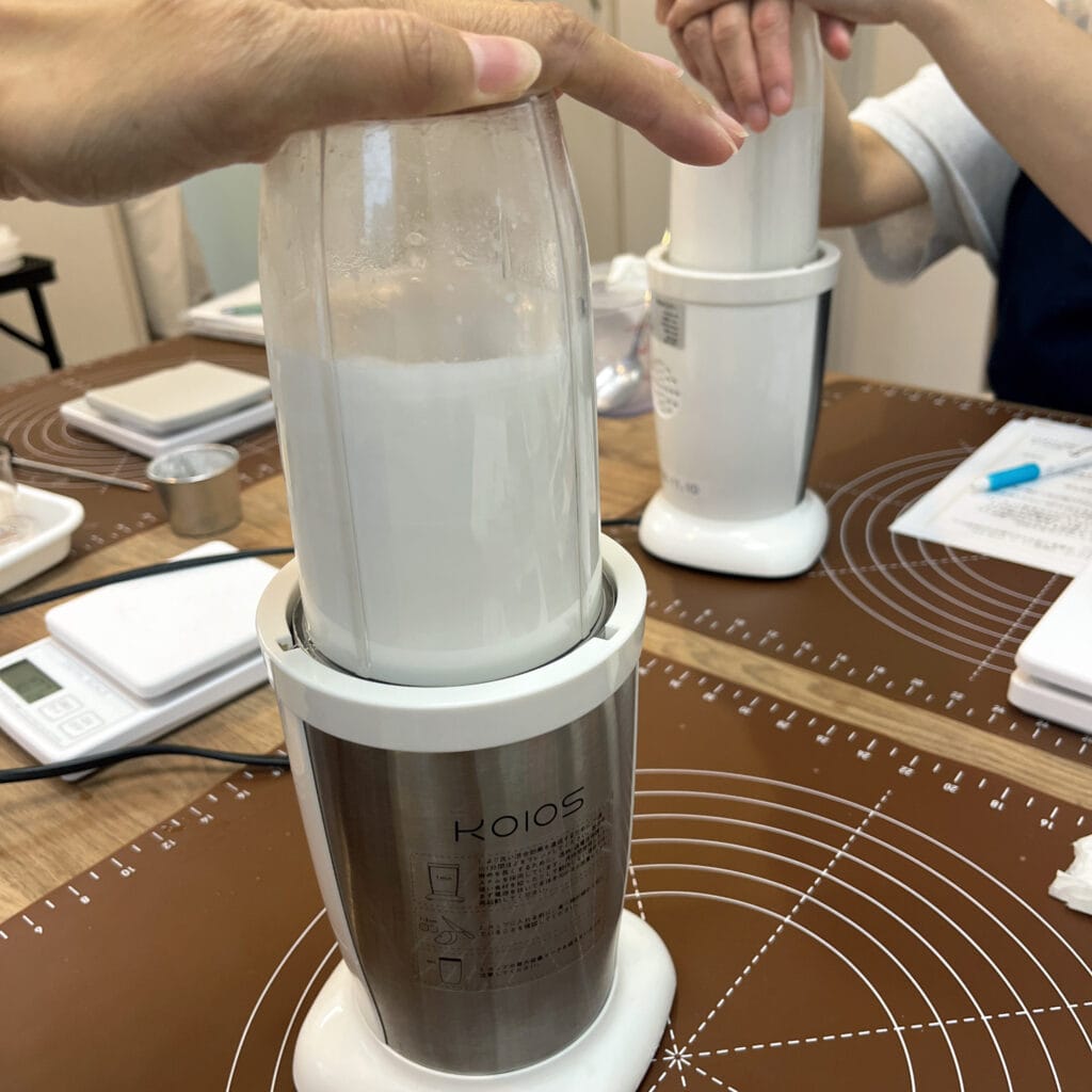更に新しいお水を追加して何回かに分けて、ミキサーにかけていきます。