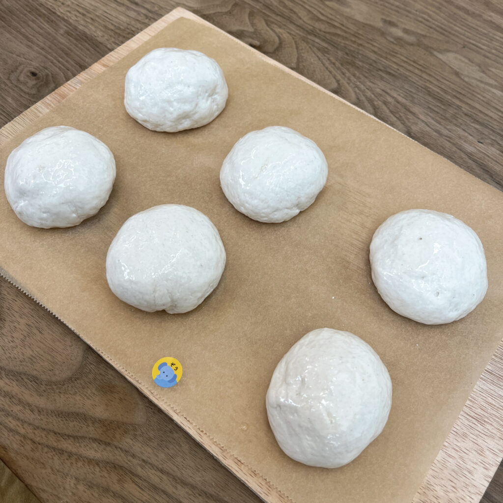 生地ができたら、お団子みたいにまぁるく丸めていきます。