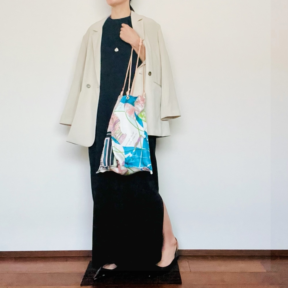 こちらのワンピースは身長にあわせて2つの丈感の展開で、レギュラー丈よりも8㎝長いロング丈を私は選びました。