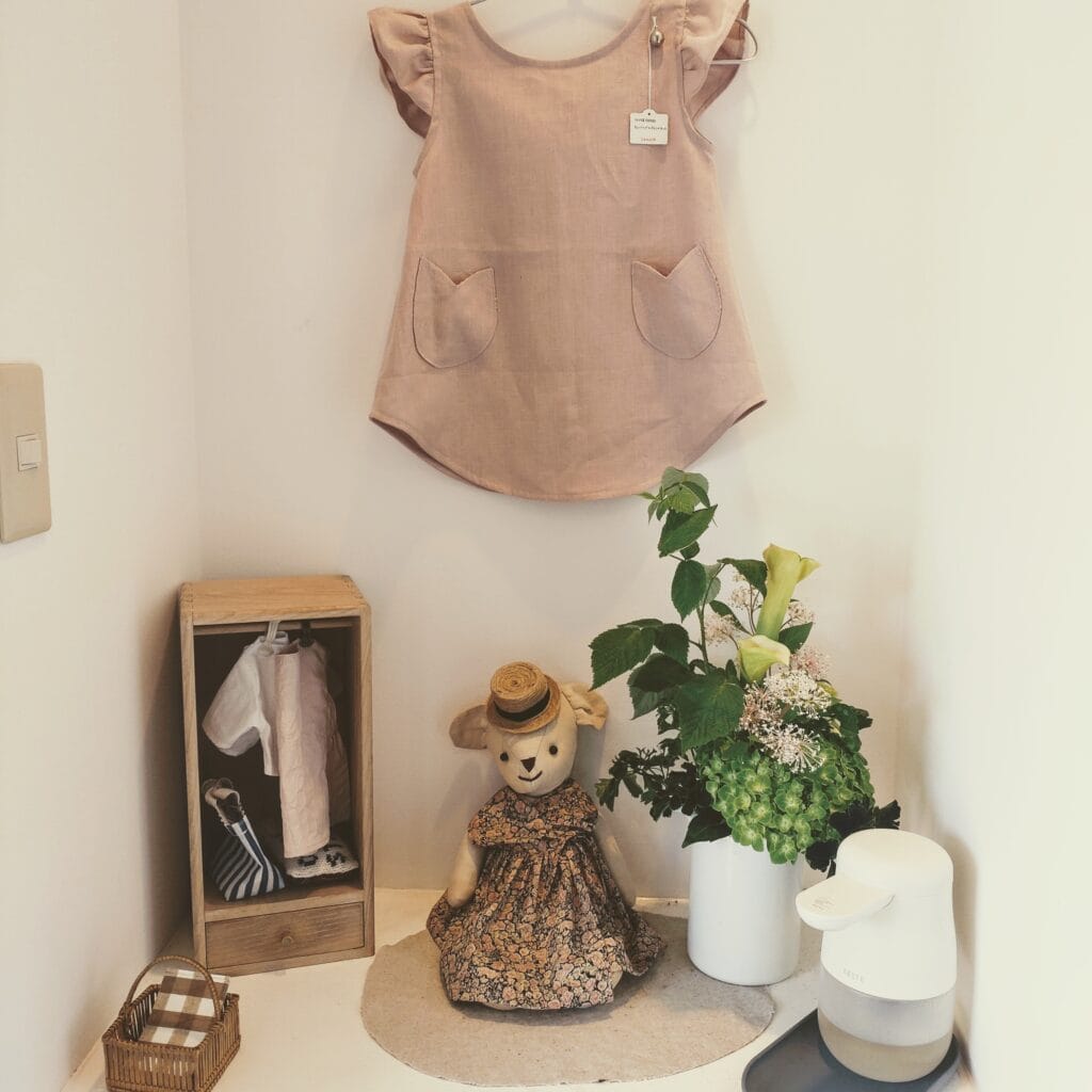 CHECK&STRIPE fabric&things(芦屋)。入口のディスプレイも毎回かわいくて楽しみです。くまちゃんのリバティワンピースがかわいい♡