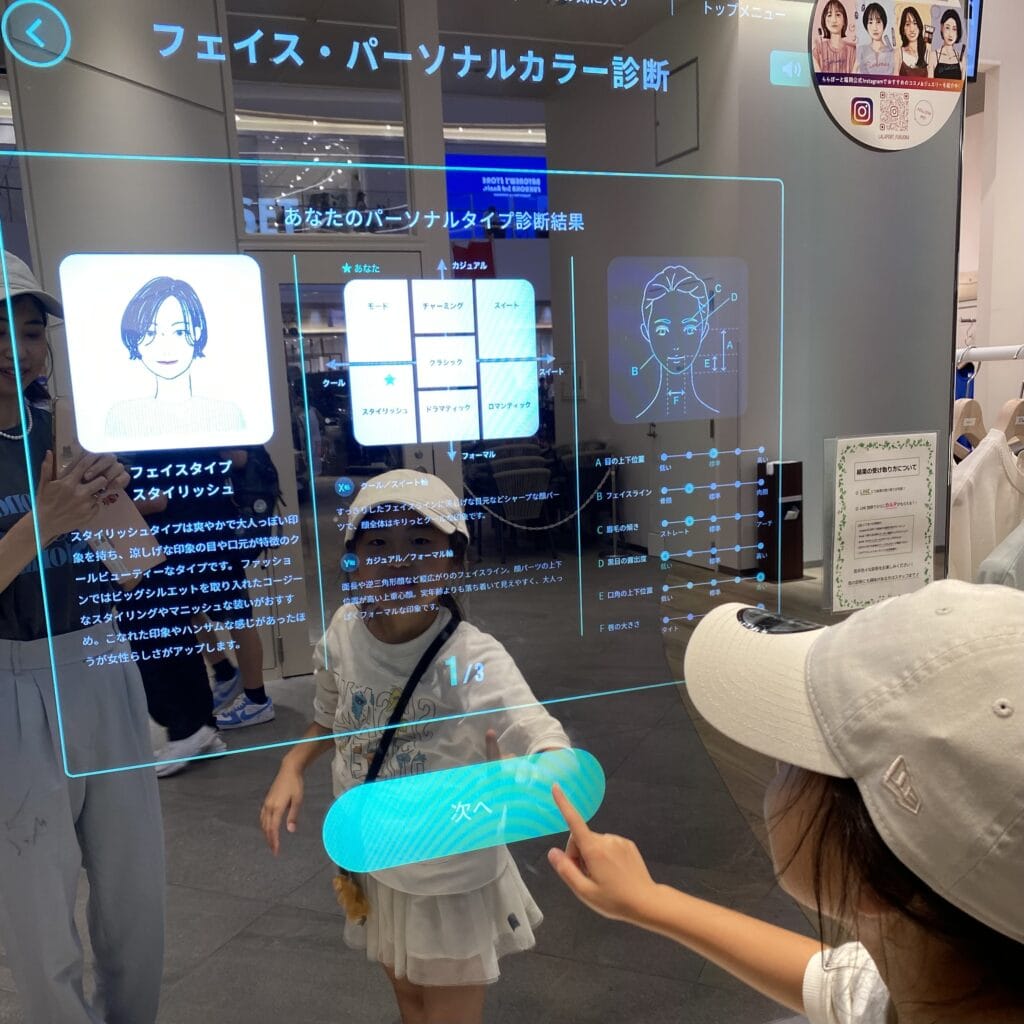 ここからは、人の優しさに触れます⋯♡骨格診断の結果をもとに、店員さんによるスタイリングのアドバイスがあります。
