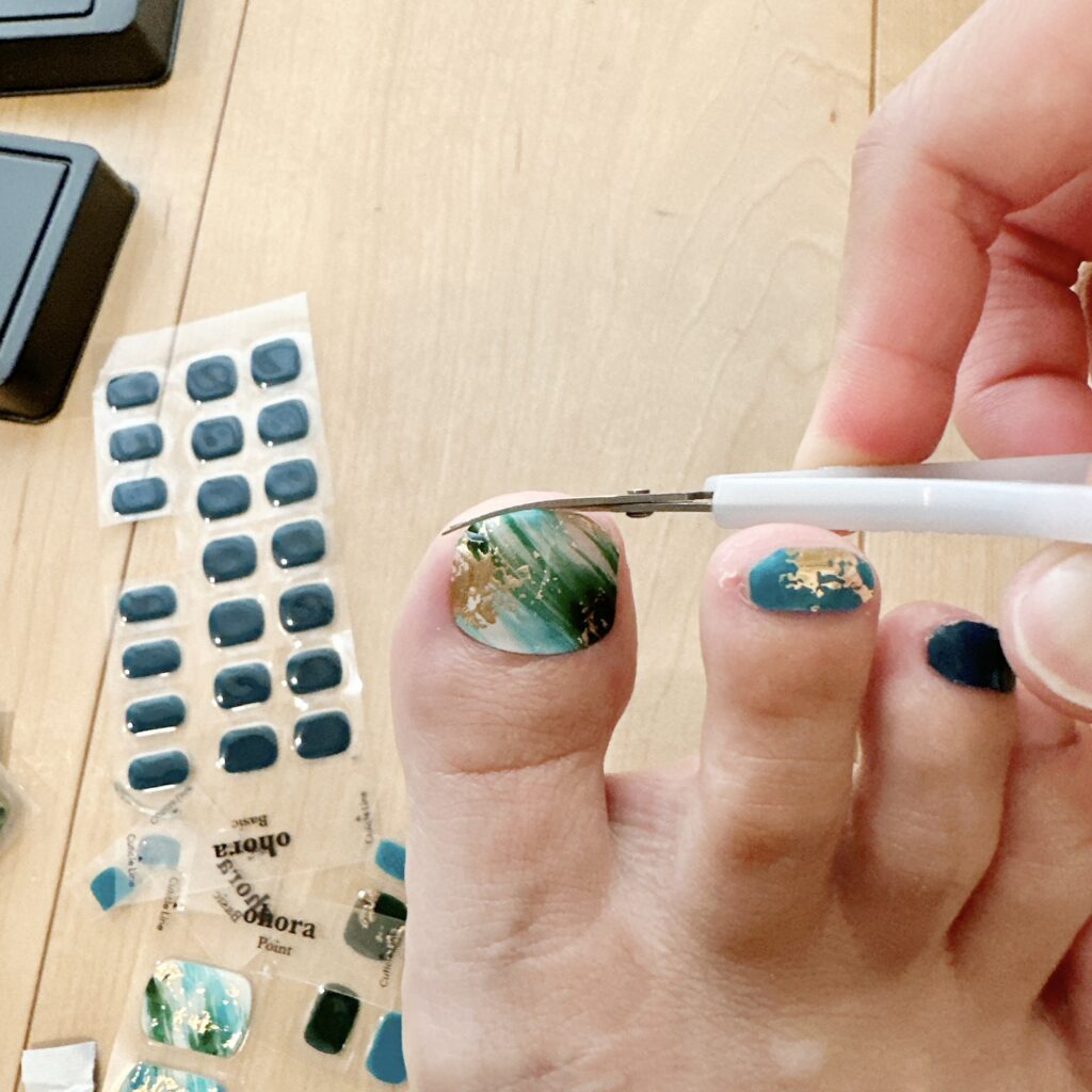 前回までは、自爪のサイドからはみ出した部分の処理が上手にいかず、ちょっと浮いてしまうこともありましたが、今回、眉毛用ハサミでそこそこしっかり処理できたおかげで、去年よりも仕上がりがよいような…