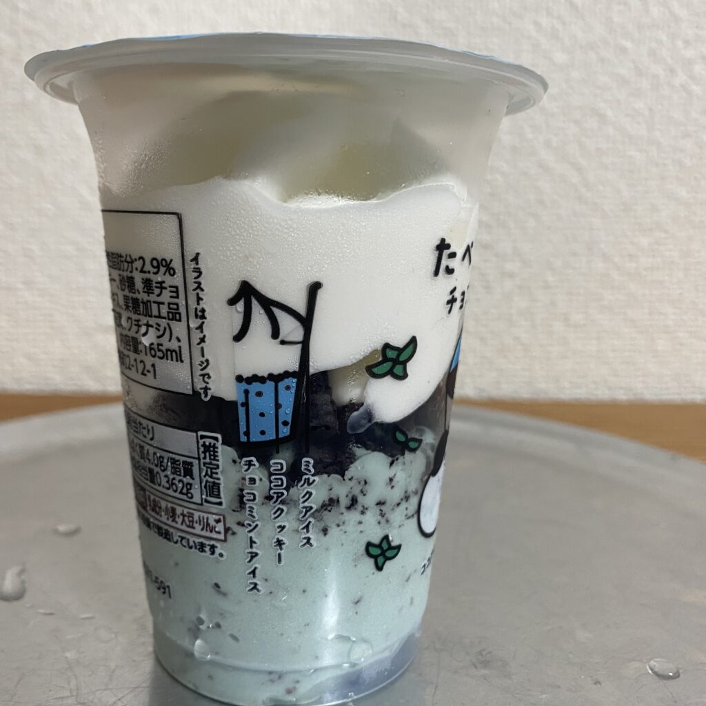 1番上の層は言わずもがな美味しいなめらかなミルクアイスに、ごろごろと食感が楽しいココアクッキーがチョコミントアイスとの間に潜んでいます!