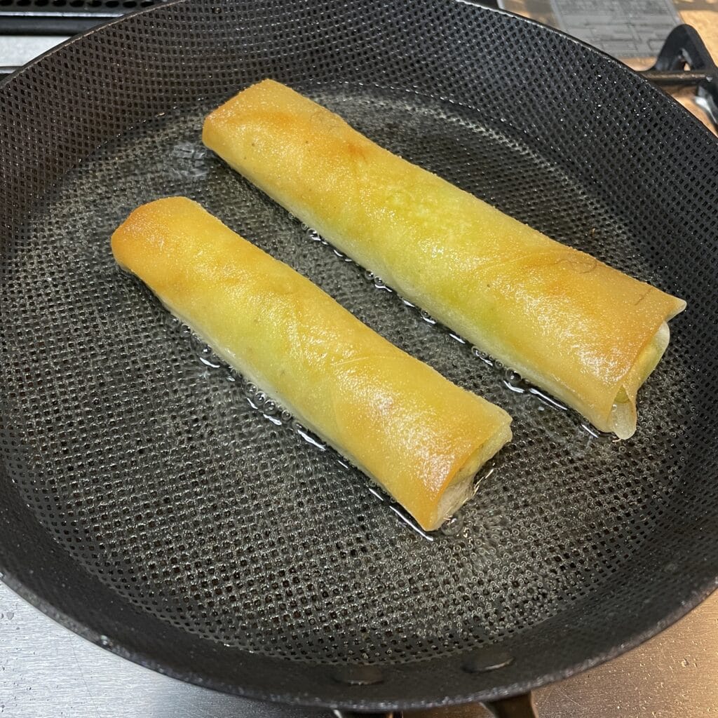 →それぞれ実の大きさやひげの量が異なるので、同じ大きさごとに分けておくと同じタイミングで揚げることができて良いなと思いました。また、ひげの量が多くても欲張らず、全部の大きさを揃えながら包むと良いです(揚げる時間を統一するために)