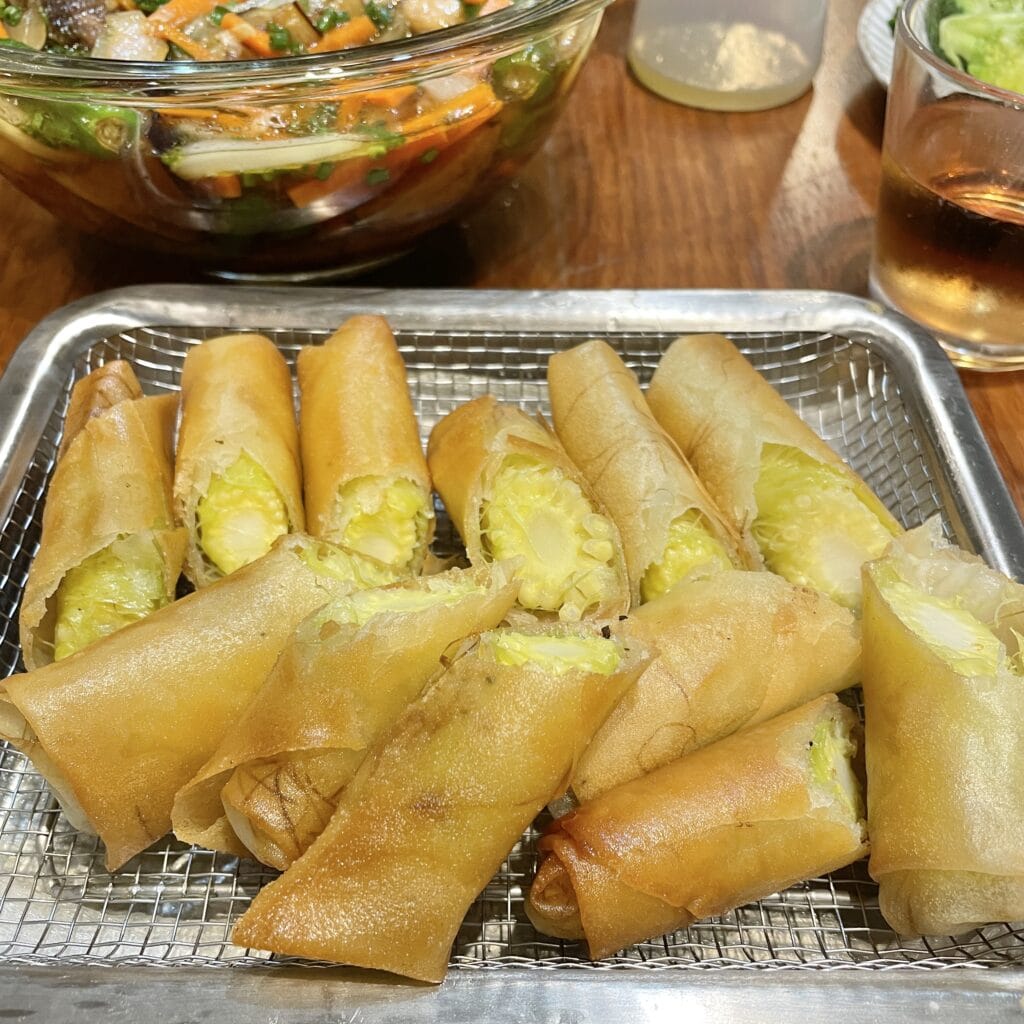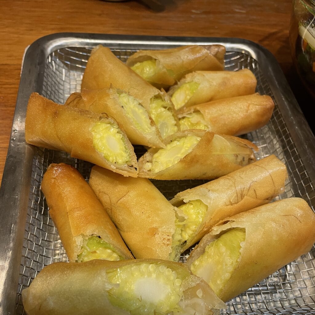 春巻きの皮に包まれたヤングコーンがホクホク!ひげがジューシ〜。