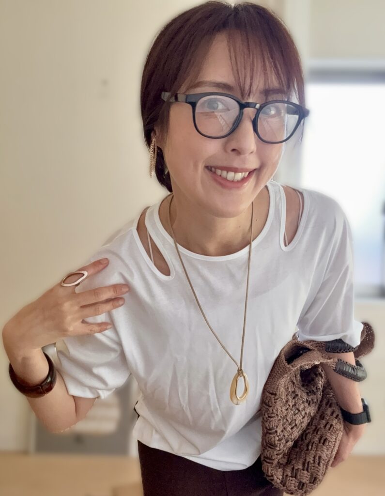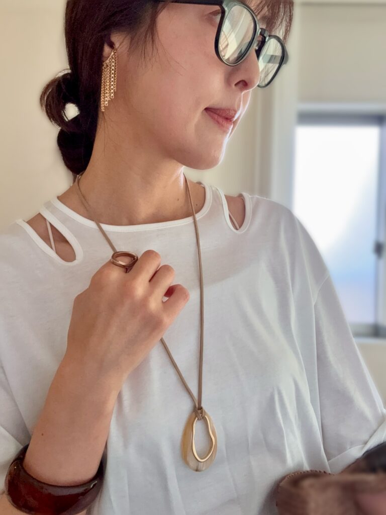 アクセもブラウンやベージュで色味を合わせました。