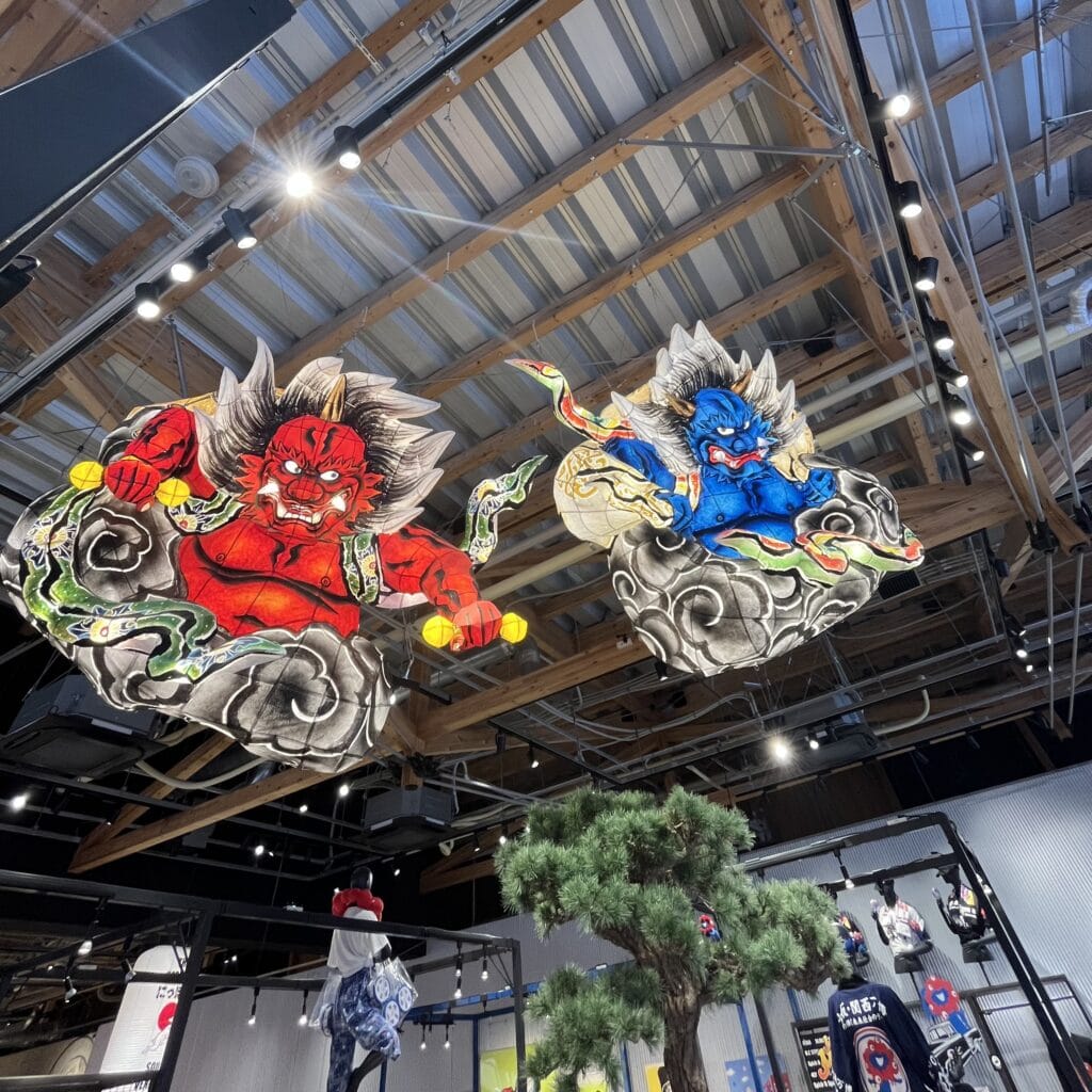 ▼再生素材で創り上げられた「風神・雷神」のねぶた装飾