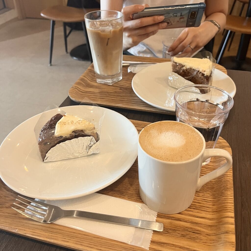 やさしい甘さのケーキにたっぷりのオーツラテで、朝から幸せ気分になりました。