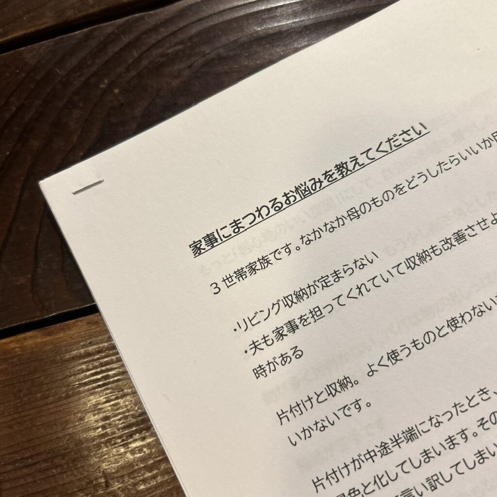 子供のおもちゃの収納についてや、ものを探す時間が多すぎる悩みなど、時には共感し、笑い飛ばしながら解決策を見つけていく時間は、会場が一体化し、たくさんの笑顔が溢れる時間でした。