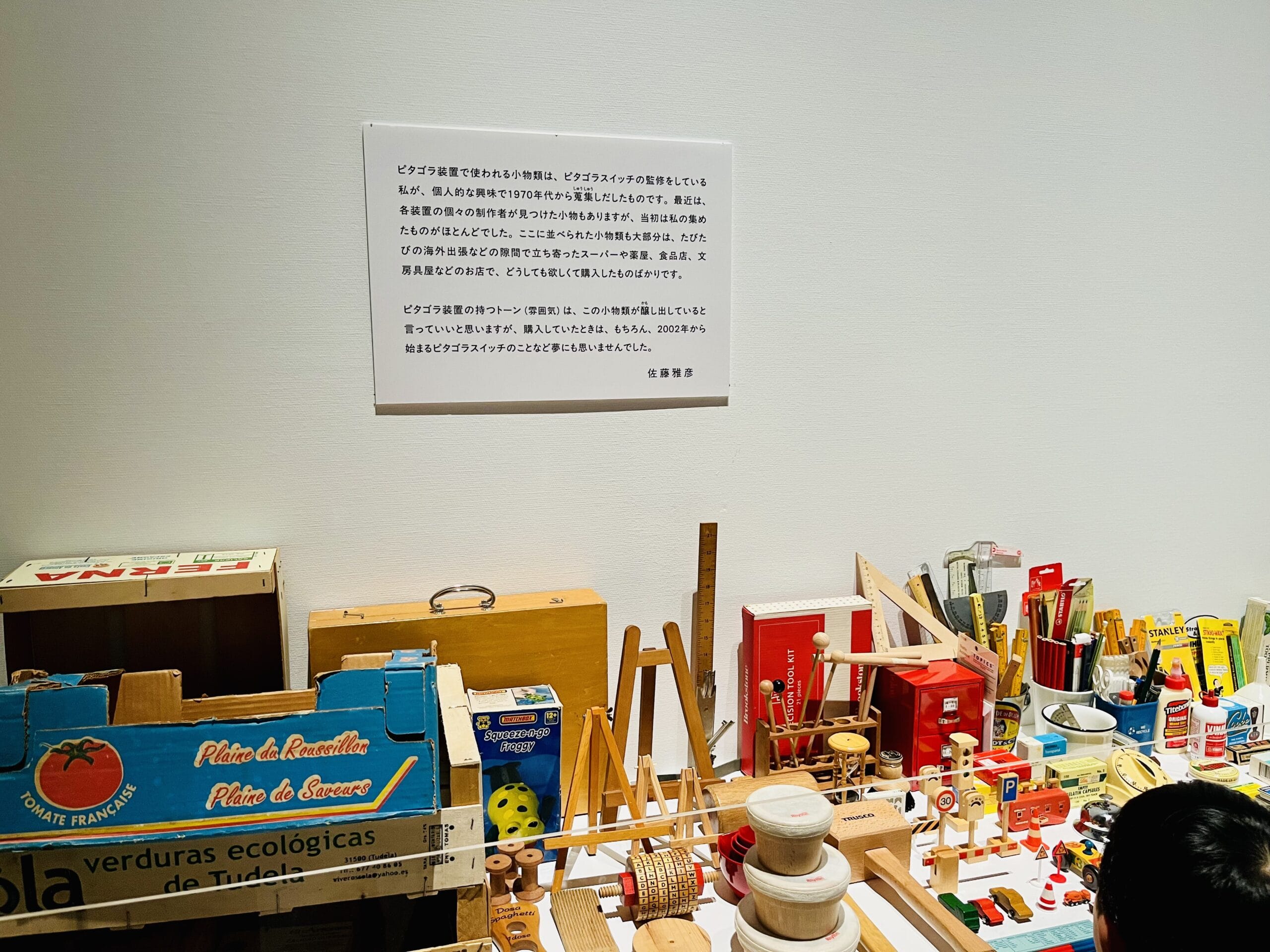 歴代のピタゴラ装置に使われた文房具や、身の回りにある生活用品がズラーっと並んでいる展示エリアもあったのですが、ひとつひとつの色や形にやっぱりセンスを感じます。