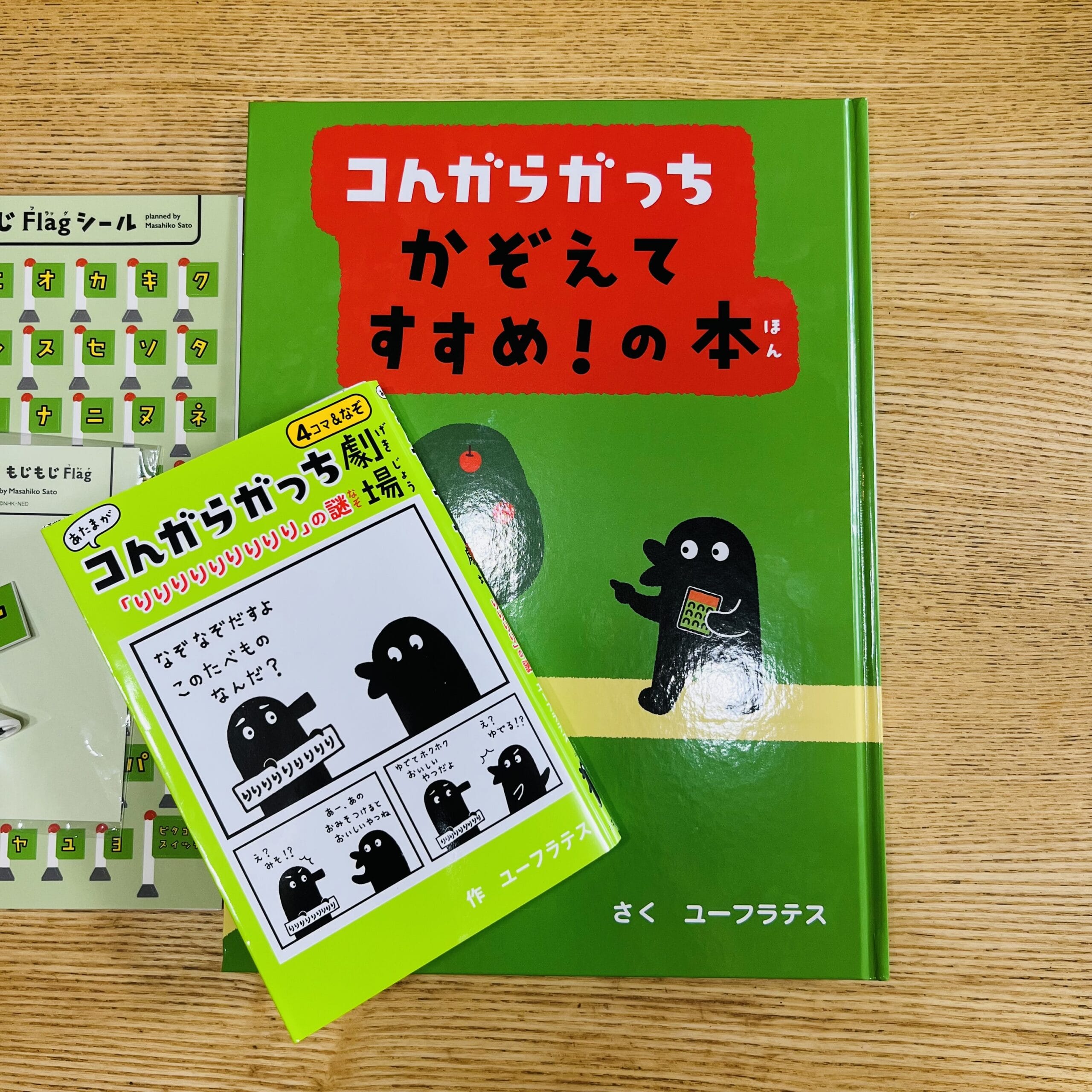 ピタゴラフラッグやシールというファン心をくすぐるグッズに加えて、今回の展示で出会った「コんガらガっち」というキャラクターの絵本も買いました。