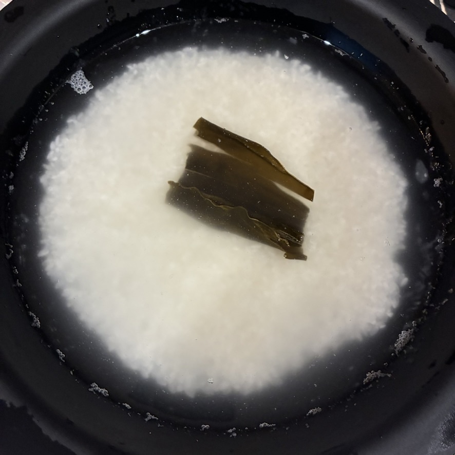 白米2合にお酒、水、昆布、塩麹を入れて30分浸水させます。