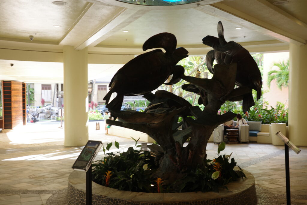 中学生のときに一度だけ家族でハワイ旅行に来たことがあるのですが、そういえばそのときもシェラトンワイキキで! エントランスにある🐢のモニュメントが記憶に残っています。