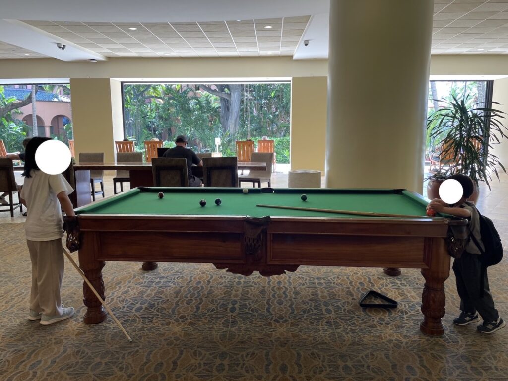 元気いっぱいな子どもたちは、ここのビリヤードコーナーに夢中に!
