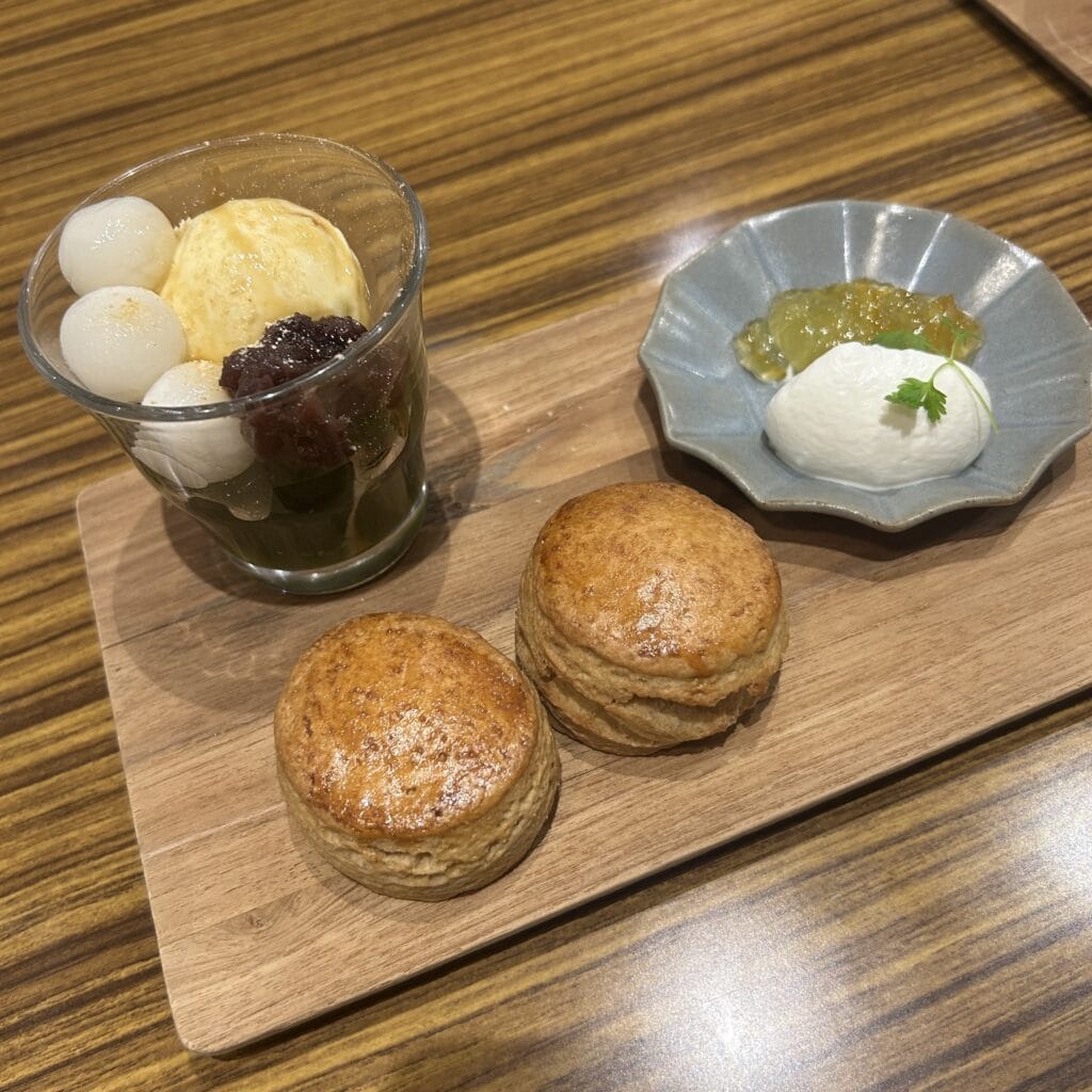 抹茶ゼリーと白玉のミニパフェ&全粒粉スコーン