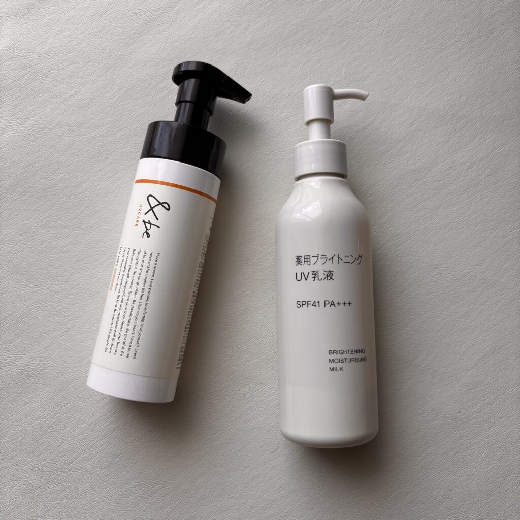 ボディ用の日焼け止めは最近はずっとポンプタイプを愛用。&beのポンプタイプも無印良品の薬用ブライトニングUV乳液もどちらも良くて、リピート購入してた。なお、どちらも顔にも使えます。