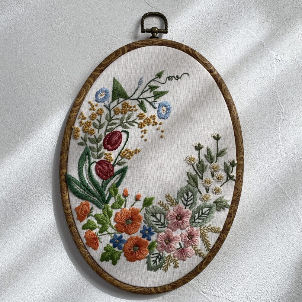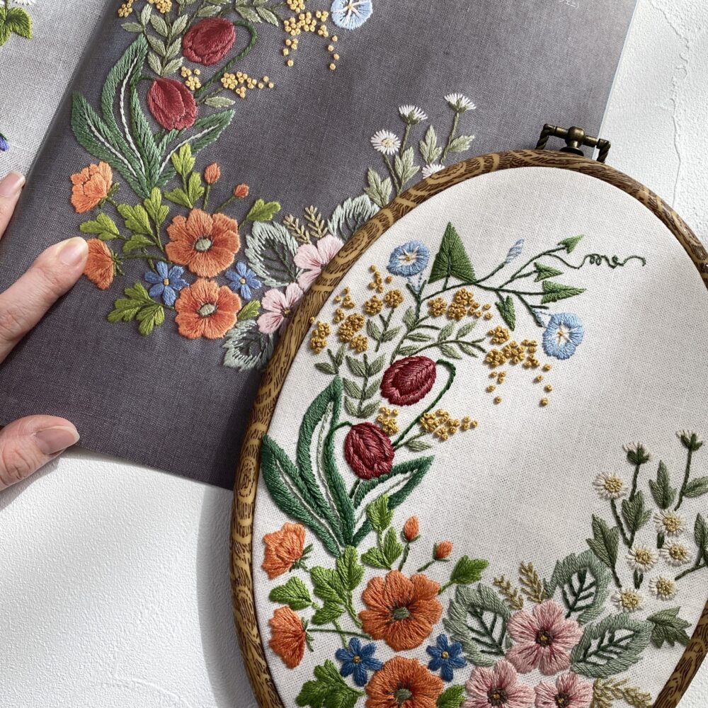 現在はまたすこし雰囲気の違う花の刺繍に挑戦中です〜!