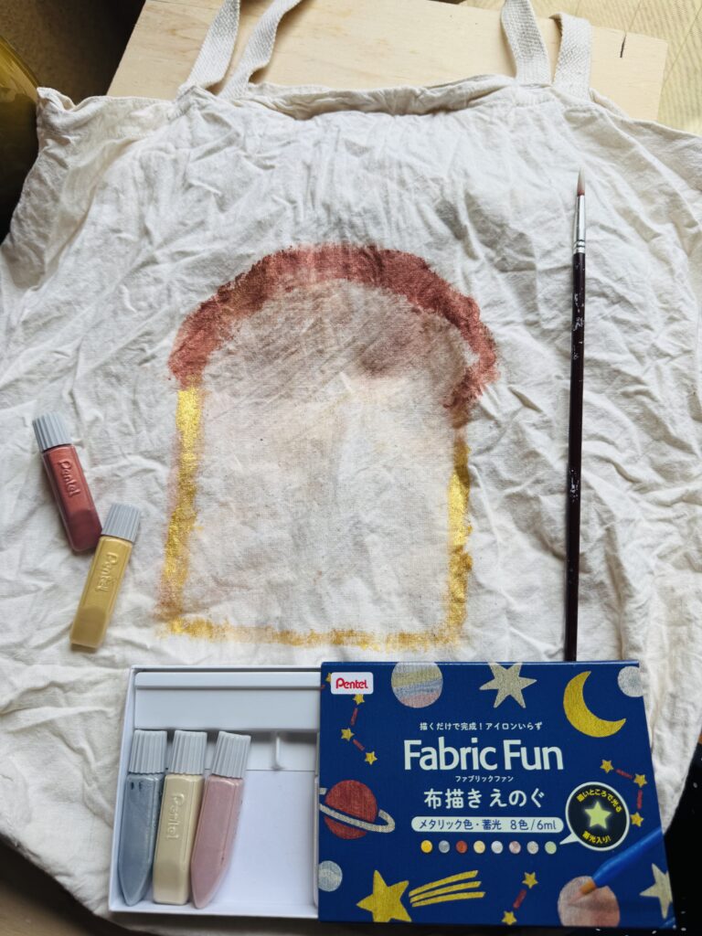 普通のアクリル絵の具で布に絵を描くとパリパリになるけれど、この絵の具はソフトな仕上がり✨