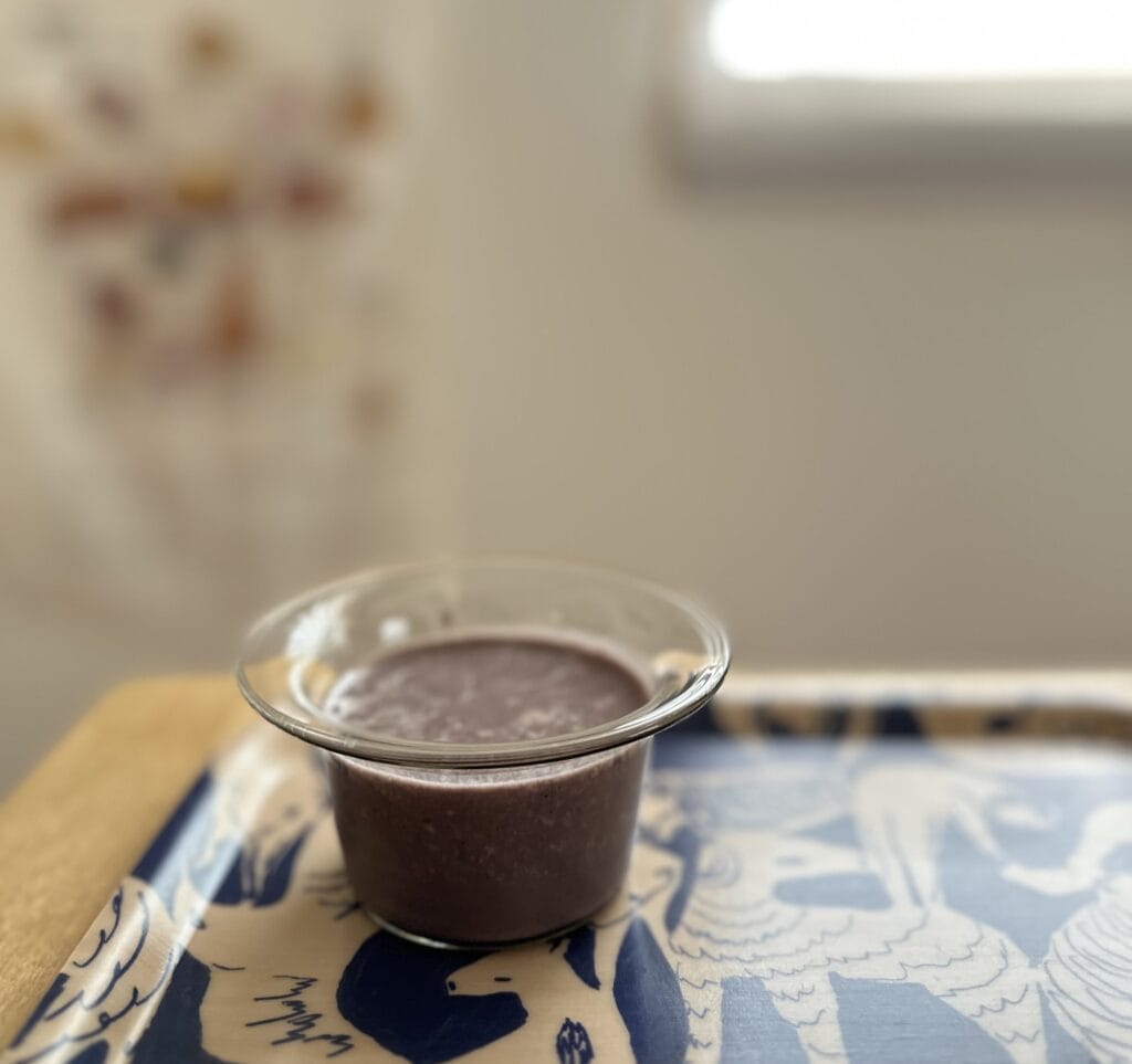 こちらはレシピ掲載のものではなく自己流で作ったものですが、KALDIで購入したアサイーペーストと輪切りのバナナ1本、牛乳を入れて「JUICE&CLEAN」モードで作りました。